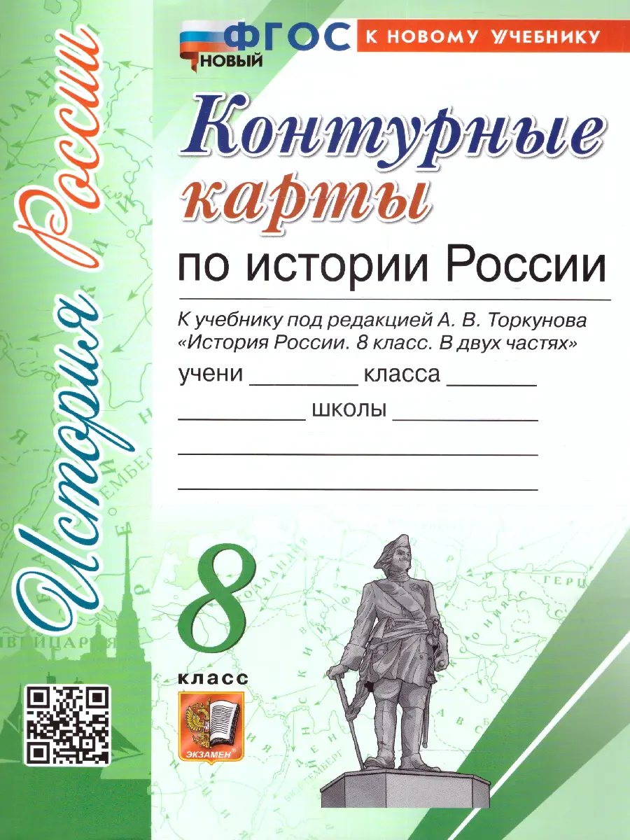 История России. 8 класс. Контурные карты. УМК Торкунова. ФГОС Новый. (к новому учебнику)