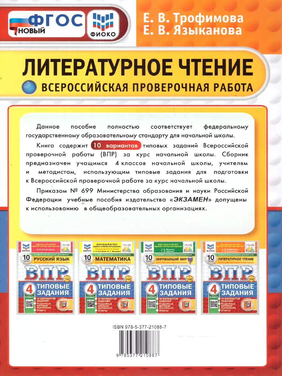 ВПР Литературное чтение 4 класс. 10 вариантов ФИОКО СТАТГРАД ТЗ. ФГОС. Данное пособие полностью соответствует федеральному государственному образовательному стандарту для начальной школы.