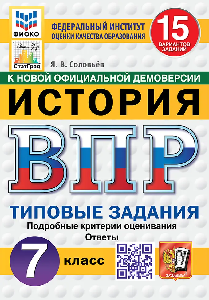 Всероссийские проверочные работы (ВПР). История. 7 класс. 15 типовых заданий. ФИОКО Статград. ФГОС Новый