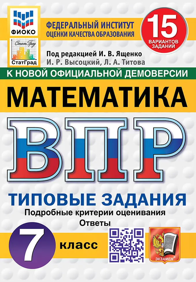 Всероссийские проверочные работы (ВПР). Математика. 7 класс. 15 типовых заданий. ФИОКО. Статград. ФГОС Новый