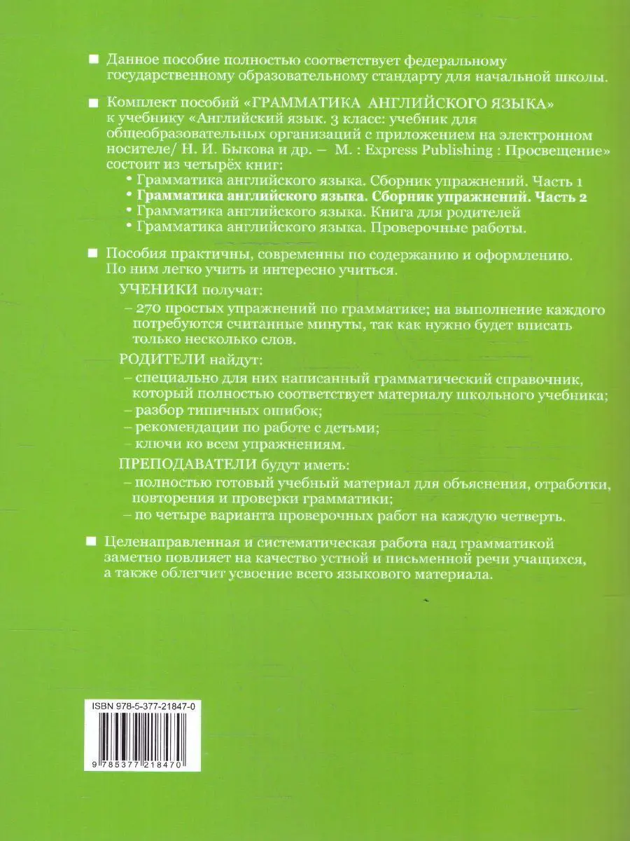 Сборник упражнений. Часть 1 - Грамматика английского языка. Сборник упражнений. Часть 2 - Грамматика английского языка. Книга для родителей - Грамматика английского языка. Проверочные работы.