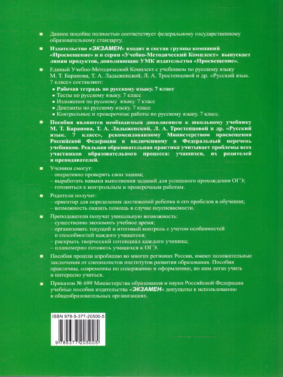 Предлагаемая рабочая тетрадь является необходимым дополнением к школьному учебнику М. Т. Баранова и др. "Русский язык. 7 класс. В двух частях", рекомендованному Министерством просвещения Российской Федерации и включенному в Федеральный перечень учебников.