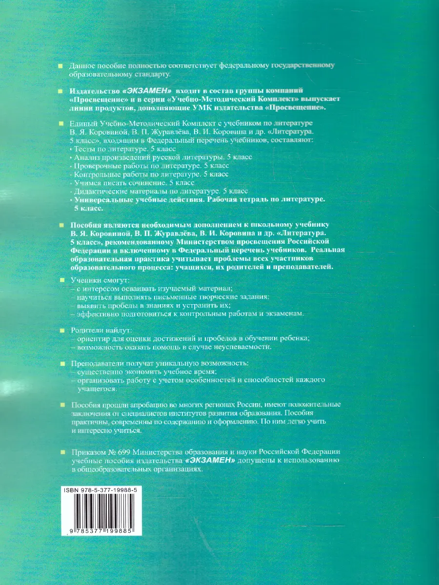 Литература 5 класс. Рабочая тетрадь. ФГОС. Пособие подчинено логике изучения программного материала по литературе в 5 классе по УМК под редакцией В. Я. Коровиной, что позволит учителю организовать проектно-исследовательскую де-ятельность школьников с художественным текстом, не выходя за рамки школьной программы в уроч-ное и внеурочное время.