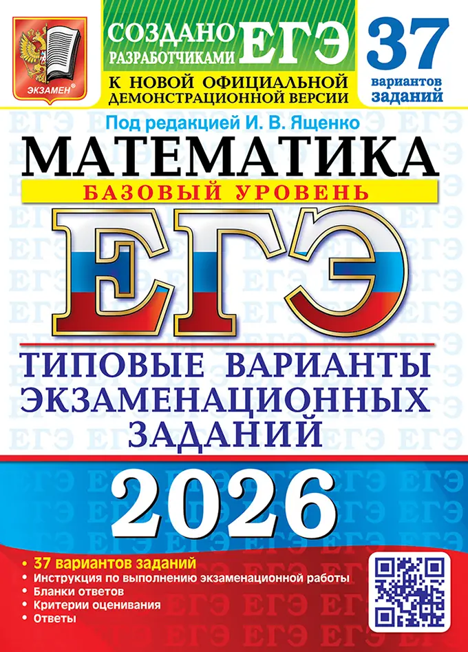 Авторы пособия - ведущие специалисты, принимающие непосредственное участие в разработке методических материалов для подготовки к выполнению контрольных измерительных материалов ЕГЭ. Пособие содержит 37 типовых вариантов экзаменационных заданий по математике. Все задания составлены с учётом особенностей и требований Единого государственного экзамена, полностью соответствуют демоверсии, спецификации и кодификатору ЕГЭ 2026 года по математике, опубликованным на сайте ФИПИ. Назначение пособия - предоставить читателям информацию о структуре и содержании контрольных измерительных материалов по математике, степени трудности заданий. В сборнике даны ответы на все варианты тестов. Кроме того, приведены образцы бланков, используемых на ЕГЭ для записи ответов и решений. Пособие может быть использовано учителями для подготовки учащихся к экзамену по математике в форме ЕГЭ, а также старшеклассниками - для самоподготовки и самоконтроля.
