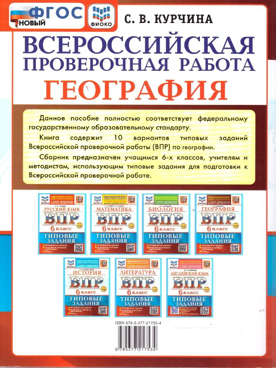 Всероссийские проверочные работы (ВПР). География. 6 класс. 10 типовых заданий. ФИОКО. ФГОС Новый+SC с кодом