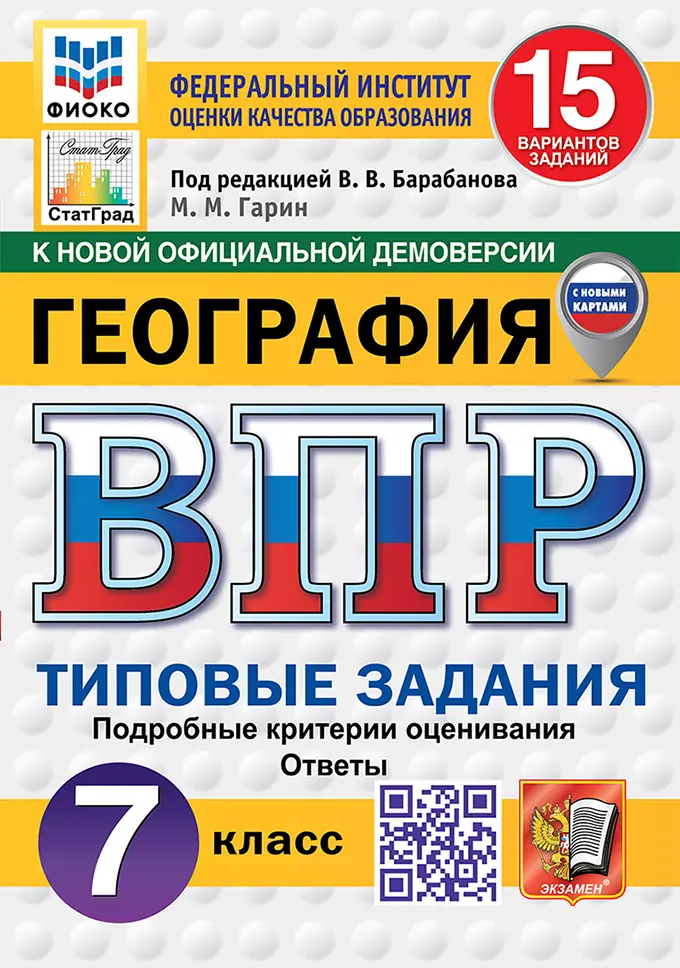 Всероссийские проверочные работы (ВПР). География. 7 класс. 15 типовых заданий. ФИОКО. Статград. ФГОС НОВЫЙ