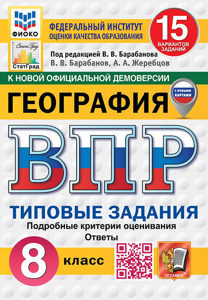Всероссийские проверочные работы (ВПР). География. 8 класс. 15 типовых заданий. ФИОКО. Статград. ФГОС Новый