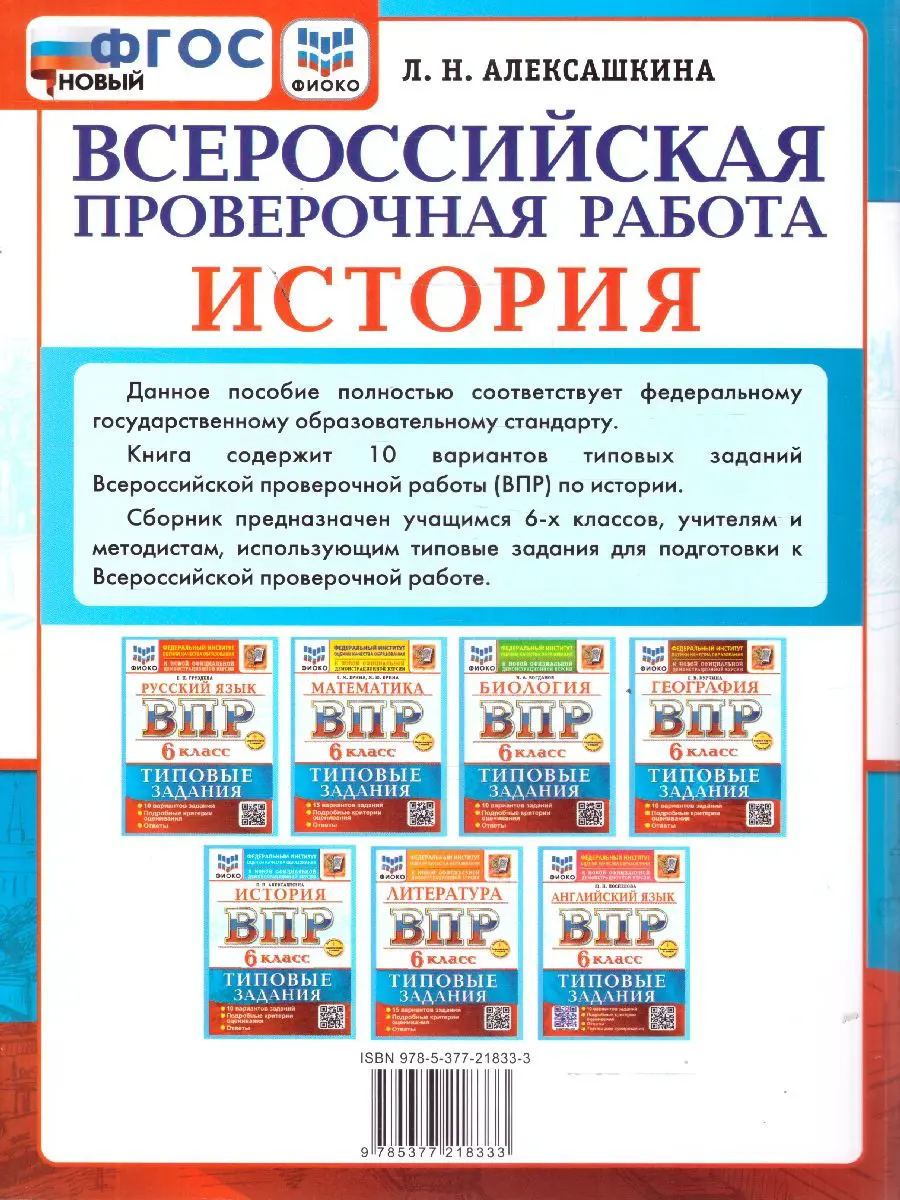 Всероссийские проверочные работы (ВПР). История. 6 класс. 10 типовых заданий. ФИОКО. ФГОС Новый+SC с кодом