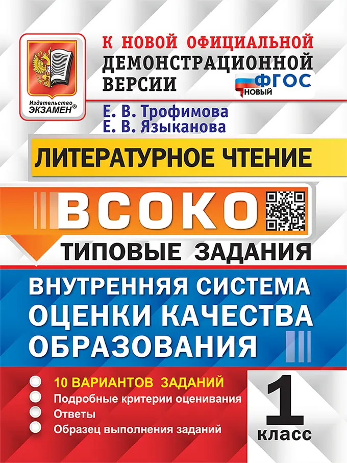 Данное пособие полностью соответствует федеральному государственному образовательному стандарту для начальной школы. Книга содержит 10 вариантов типовых заданий ВСОКО (внутренняя система оценки качества образования) за курс 1-го класса. Назначение пособия - отработка практических навыков учащихся по литературному чтению при подготовке к внутренней системе оценки качества образования. Ответы к заданиям всех вариантов являются материалами для учителя, а потому даны в конце пособия и могут быть легко изъяты, что повышает объективность оценки знаний учащихся. Сборник предназначен учащимся 1-х классов начальной школы, учителям и методистам, использующим типовые задания для подготовки к внутренней системе оценки качества образования.