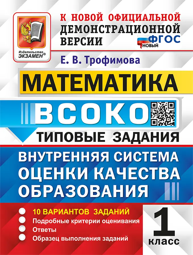 Данное пособие полностью соответствует федеральному государственному образовательному стандарту для начальной школы. Книга содержит 10 вариантов типовых заданий ВСОКО (внутренняя система оценки качества образования) за курс 1-го класса. Назначение пособия - отработка практических навыков учащихся по математике при подготовке к внутренней системе оценки качества образования. Ответы к заданиям всех вариантов являются материалами для учителя, а потому даны в конце пособия и могут быть легко изъяты, что повышает объективность оценки знаний учащихся. Сборник предназначен учащимся 1-х классов начальной школы, учителям и методистам, использующим типовые задания для подготовки к внутренней системе оценки качества образования.
