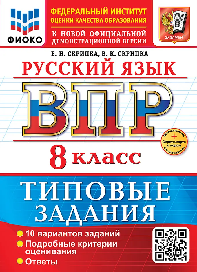 Всероссийские проверочные работы (ВПР). Русский язык. 8 класс. 10 типовых заданий. ФИОКО. ФГОС Новый+SC с кодом