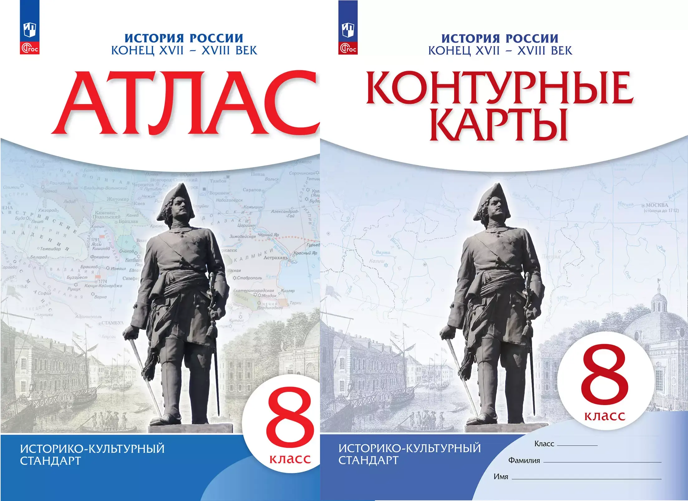 История России. 8 класс. Конец XVII - XVIII вв. Комплект: Атлас+контурные карты. (Новый историко-культурный стандарт). (Просвещение)