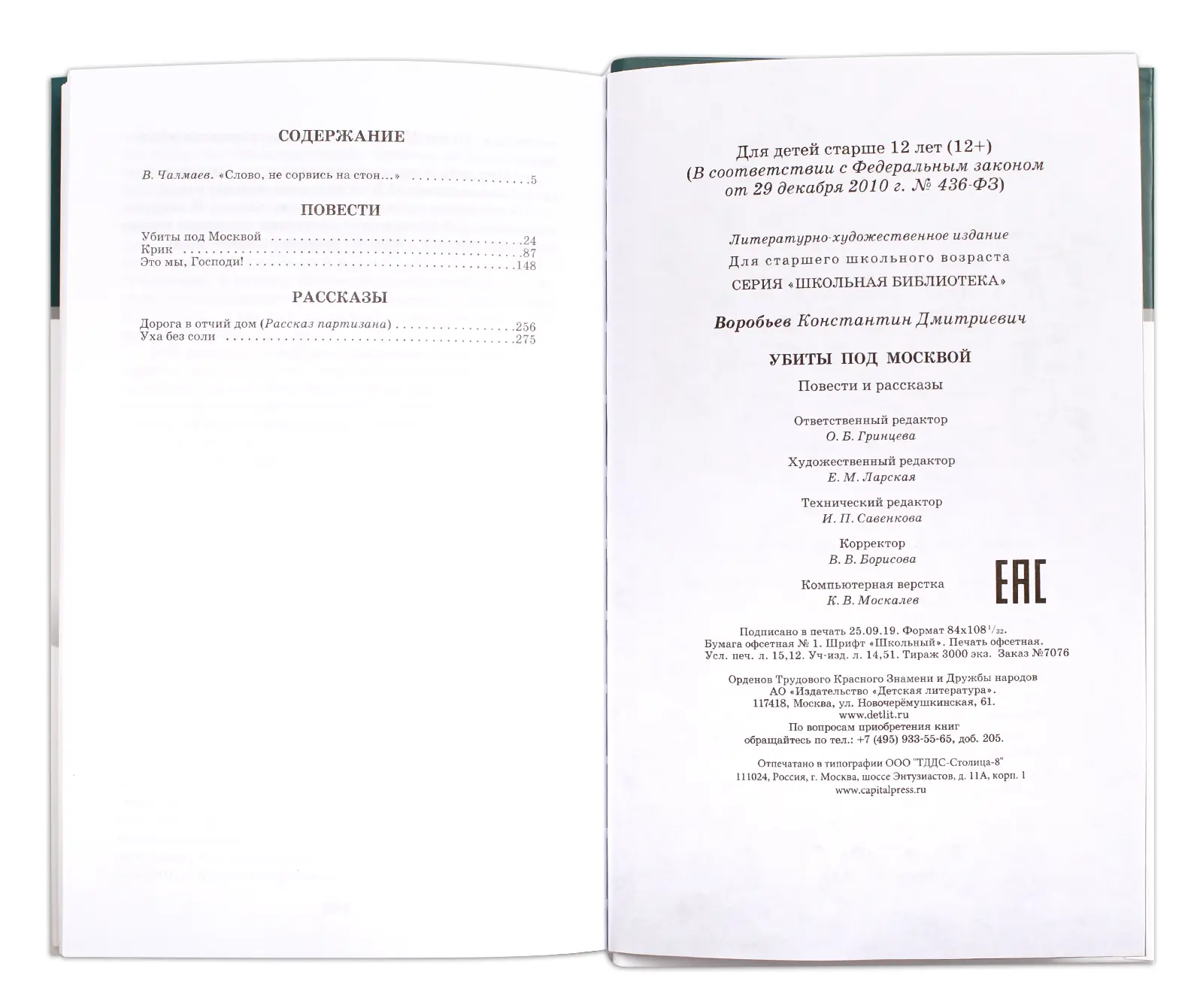 сборник писателя-фронтовика Константина Воробьева вошли широко известные повести "Убиты под Москвой", "Крик", "Это мы, Господи!" и рассказы "Дорога в отчий дом" и "Уха без соли".