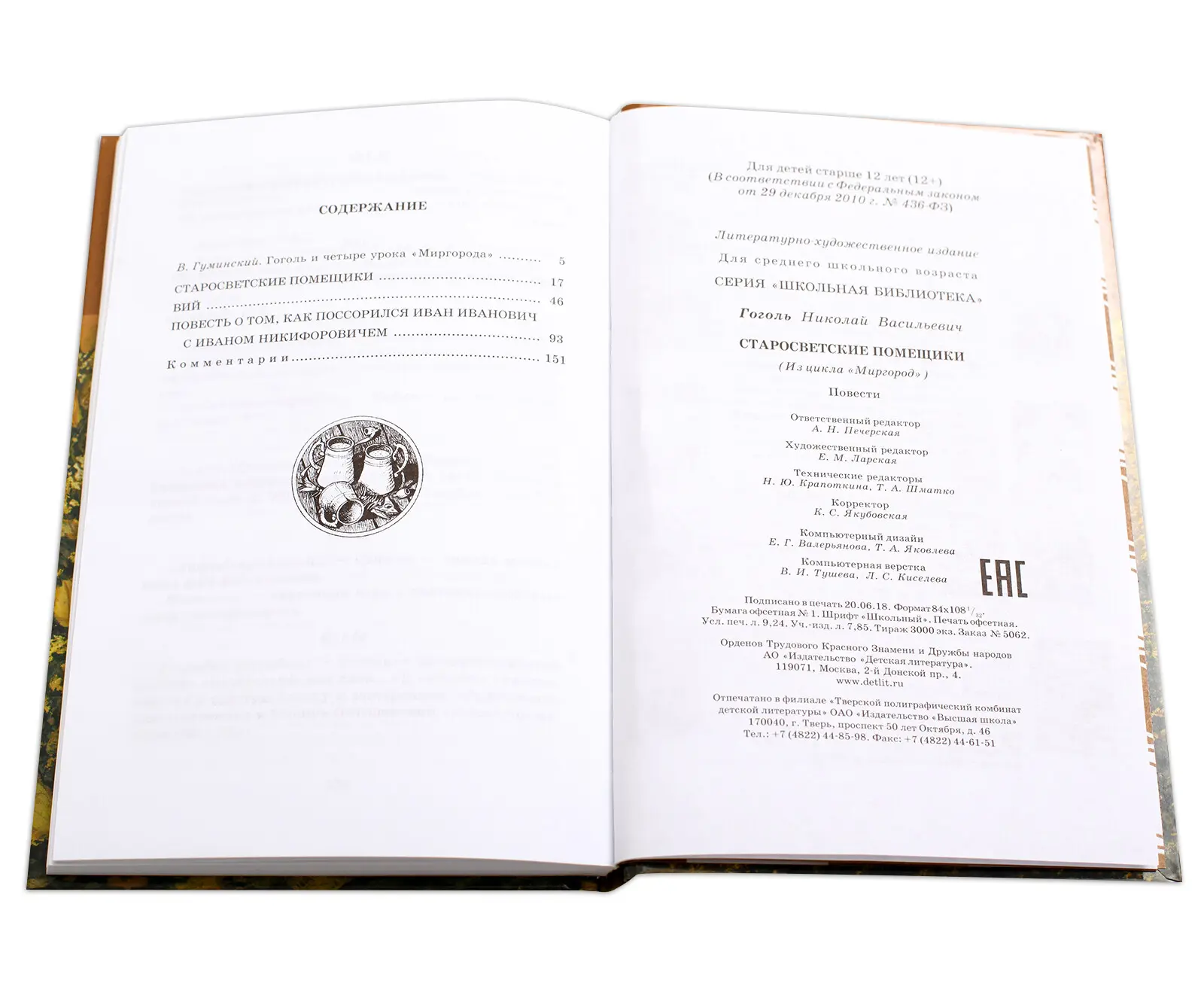 В книгу вошли повести из цикла "Миргород": "Старосветские помещики", "Вий", "Повесть о том, как поссорился Иван Иванович с Иваном Никифоровичем".