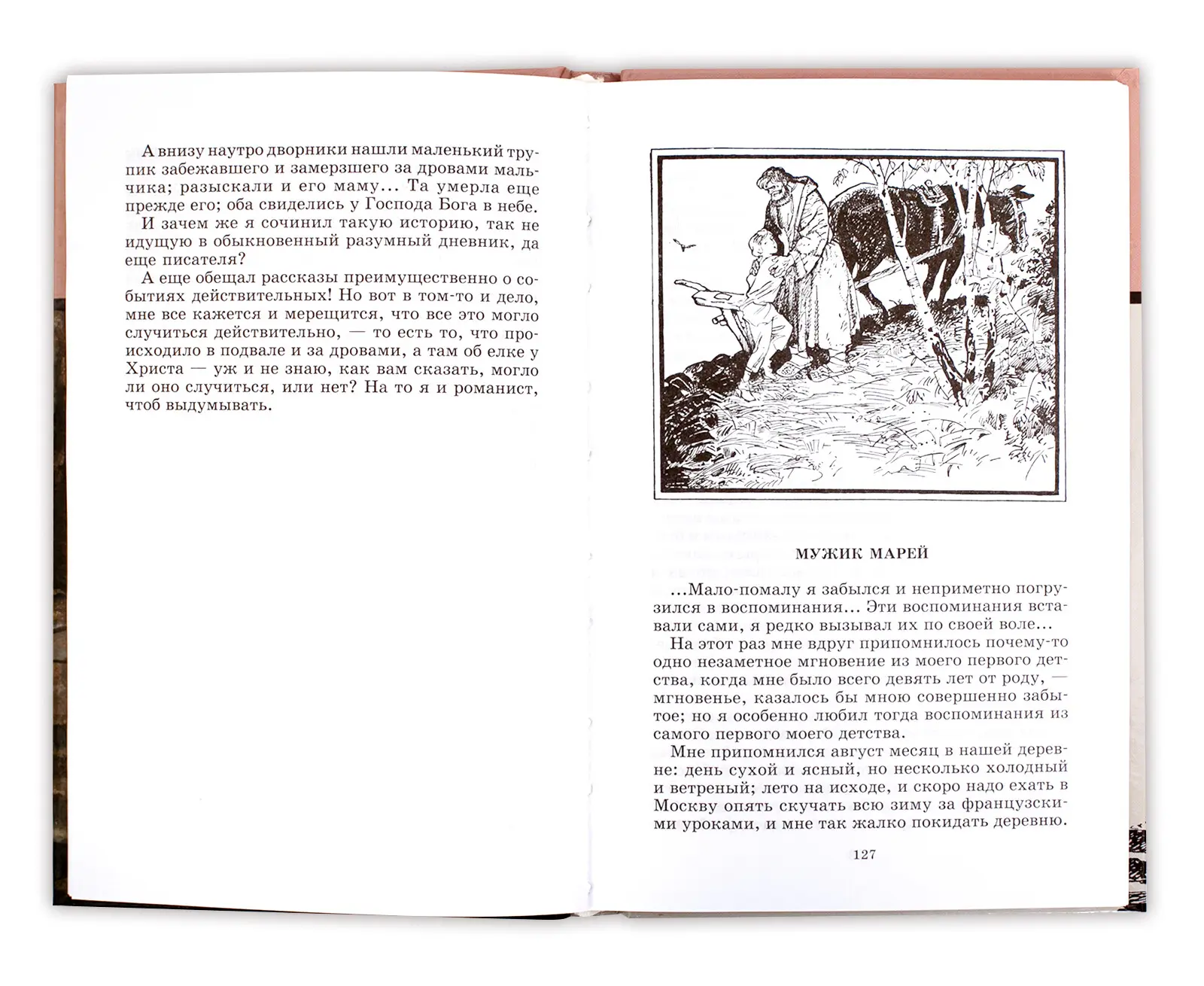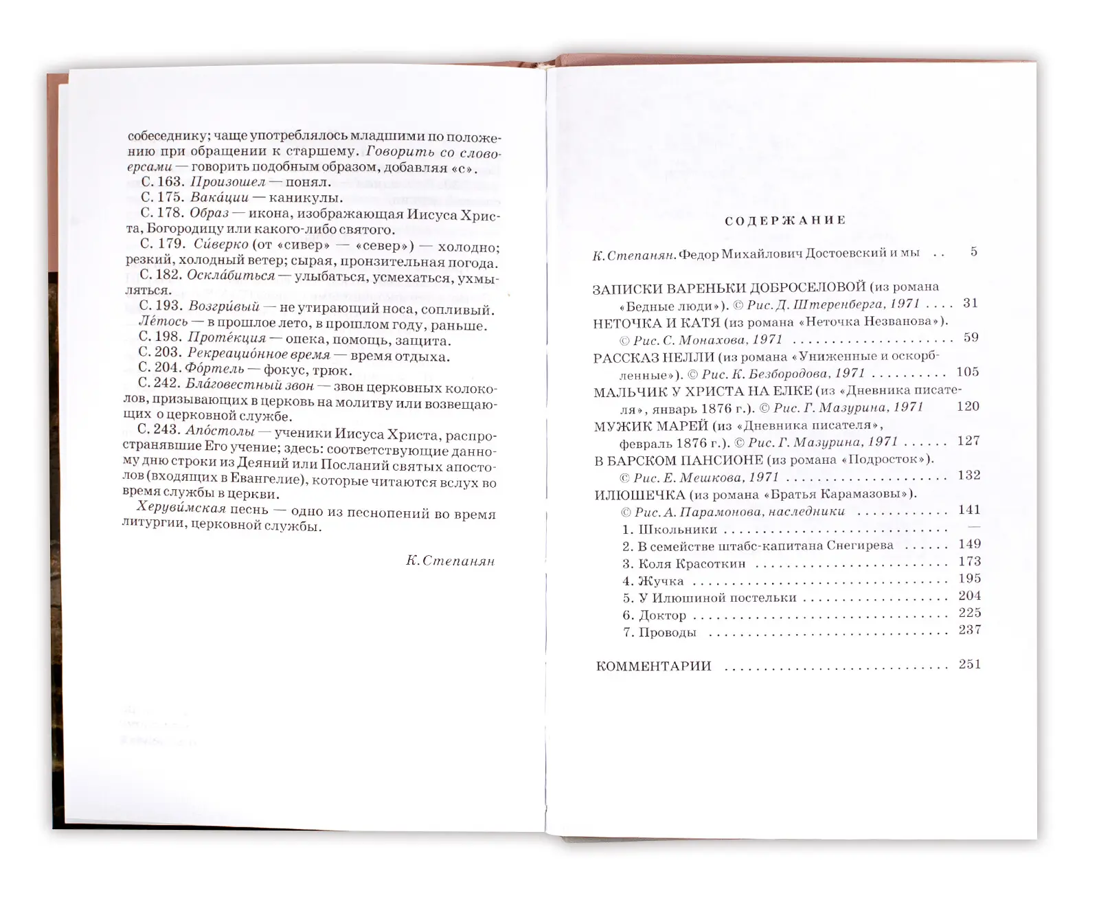 В сборник вошли отрывки и отдельные главы из произведений: "Записки Вареньки Доброселовой", "Неточка и Катя", "Рассказ Нелли", "Мальчик у Христа на елке", "Мужик Марей", "В барском пансионе", "Илюшечка".