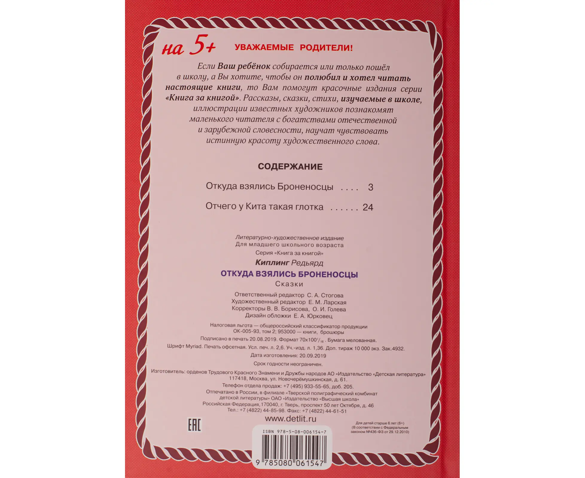 В книгу вошли две сказки Р. Киплинга — «Откуда взялись Броненосцы» и «Отчего у Кита такая глотка».