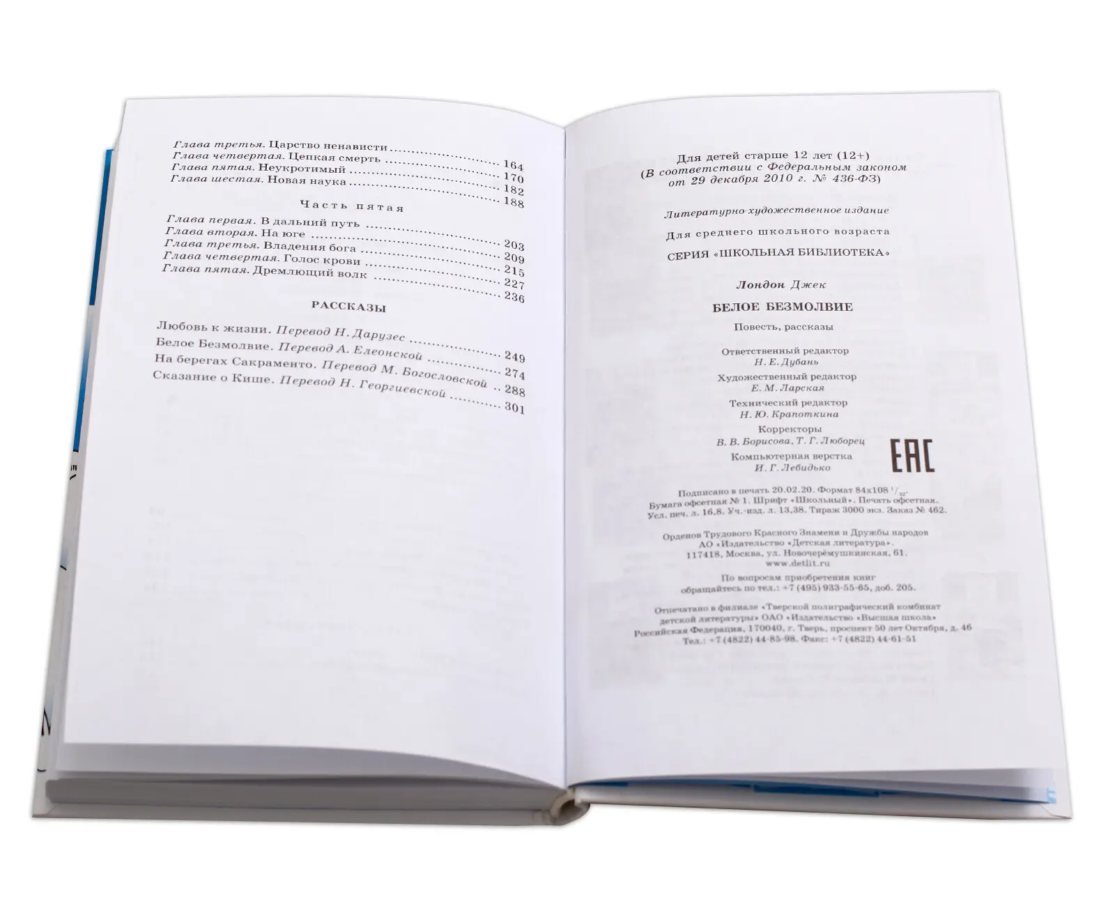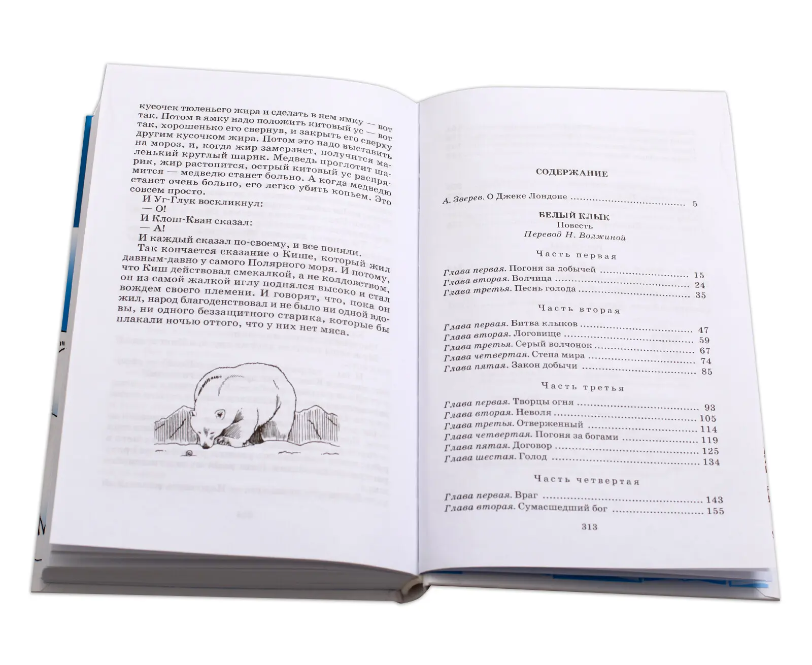 В сборник входят: повесть "Белый Клык" и северные рассказы классика американской литературы: "Любовь к жизни", "Белое Безмолвие", "На берегах Сакраменто" и "Сказание о Кише". Все произведения — о животных, о равенстве всего живого перед законами природы, о преданности и верности долгу.