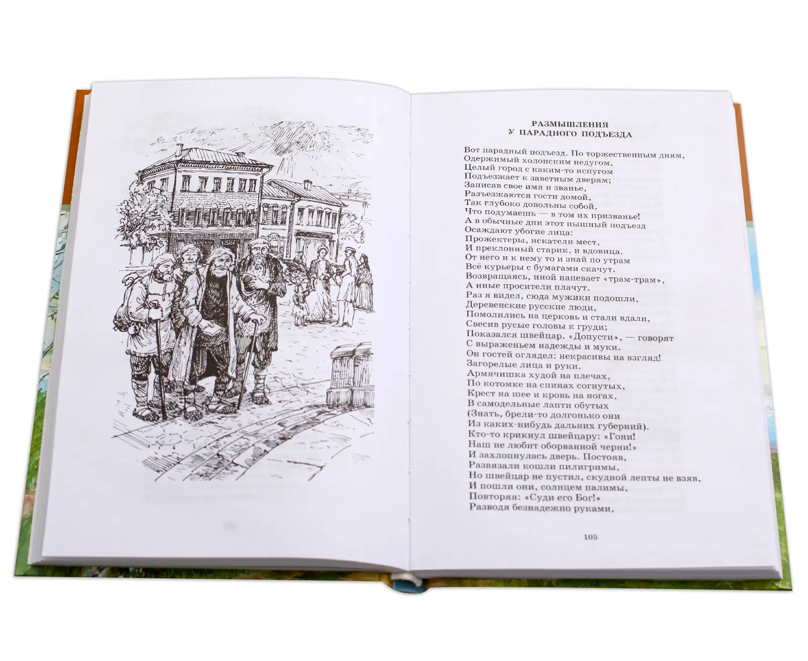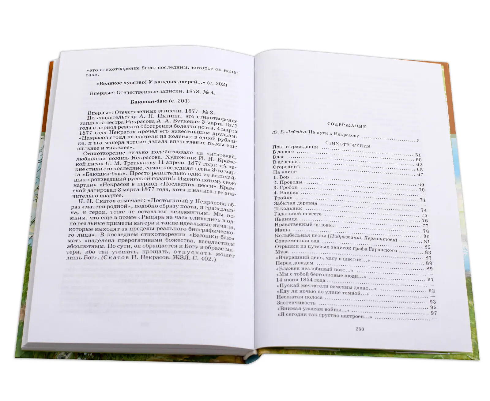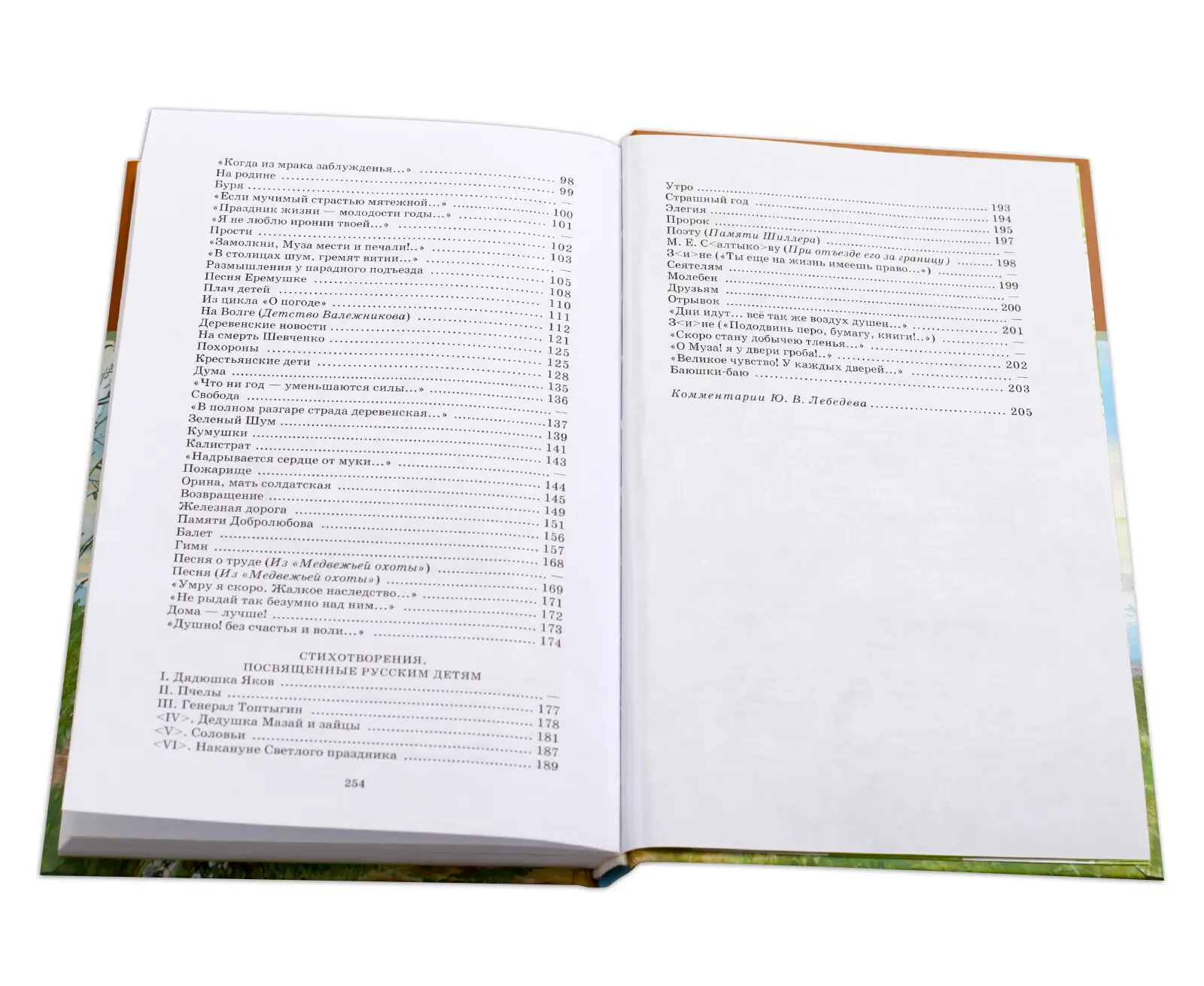 В книгу великого русского поэта, "печальника народного горя" Н. А. Некрасова вошло около ста широко известных стихотворений. Среди них "Поэт и гражданин", "Размышления у парадного подъезда", "Железная дорога", "Тройка", "Вчерашний день, часу в шестом...", "Несхатая полоса", "Крестьянские дети", "Зеленый Шум", "Элегия" и другие.