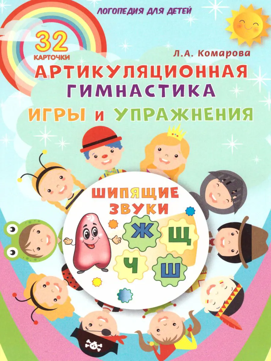 Артикуляционная гимнастика. Шипящие звуки. Игры и упражнения. Комплект логопедических карточек