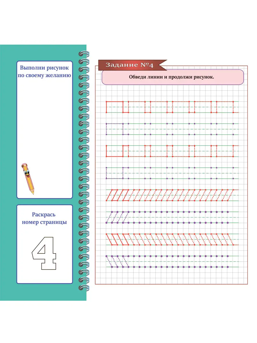 Детям предлагаются задания, которые помогут им развивать мелкую моторику рук, научиться регулировать нажим руки на карандаш или ручку, воспроизводить по образцу и писать самостоятельно элементы букв, регулировать высоту написанных букв.