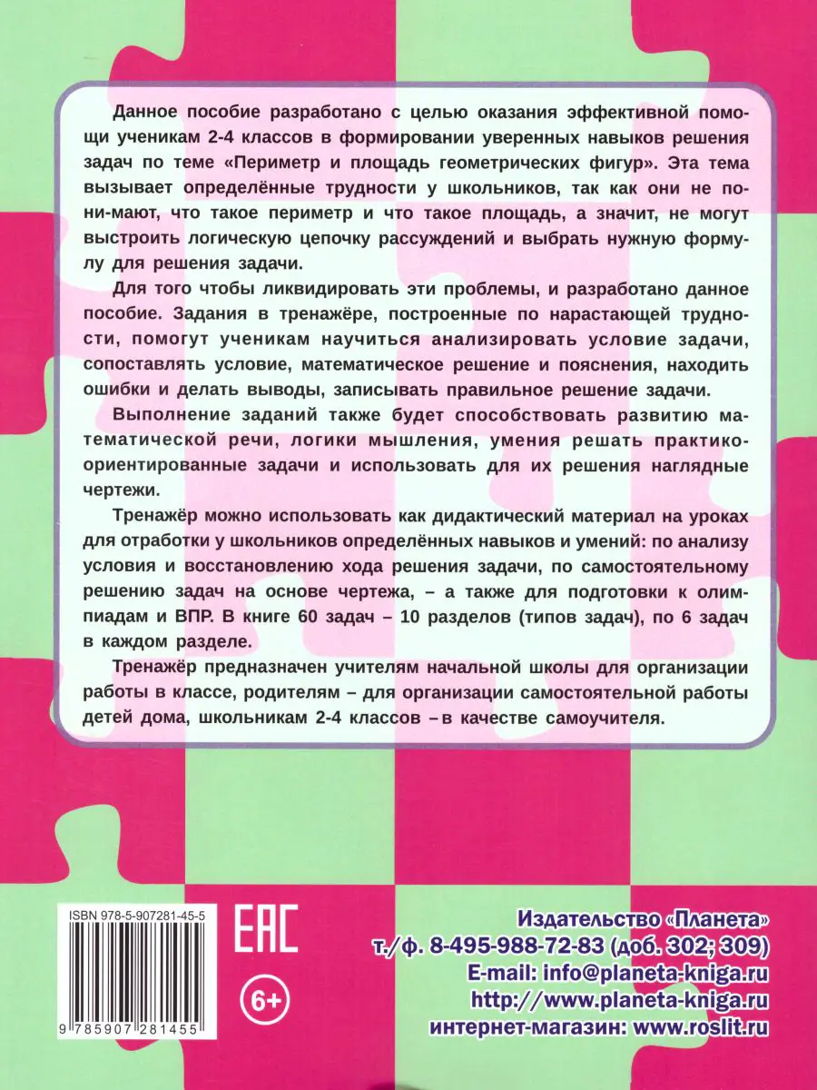Математика. 2-4 класс. Учусь решать задачи: периметр, площадь. Тренажер