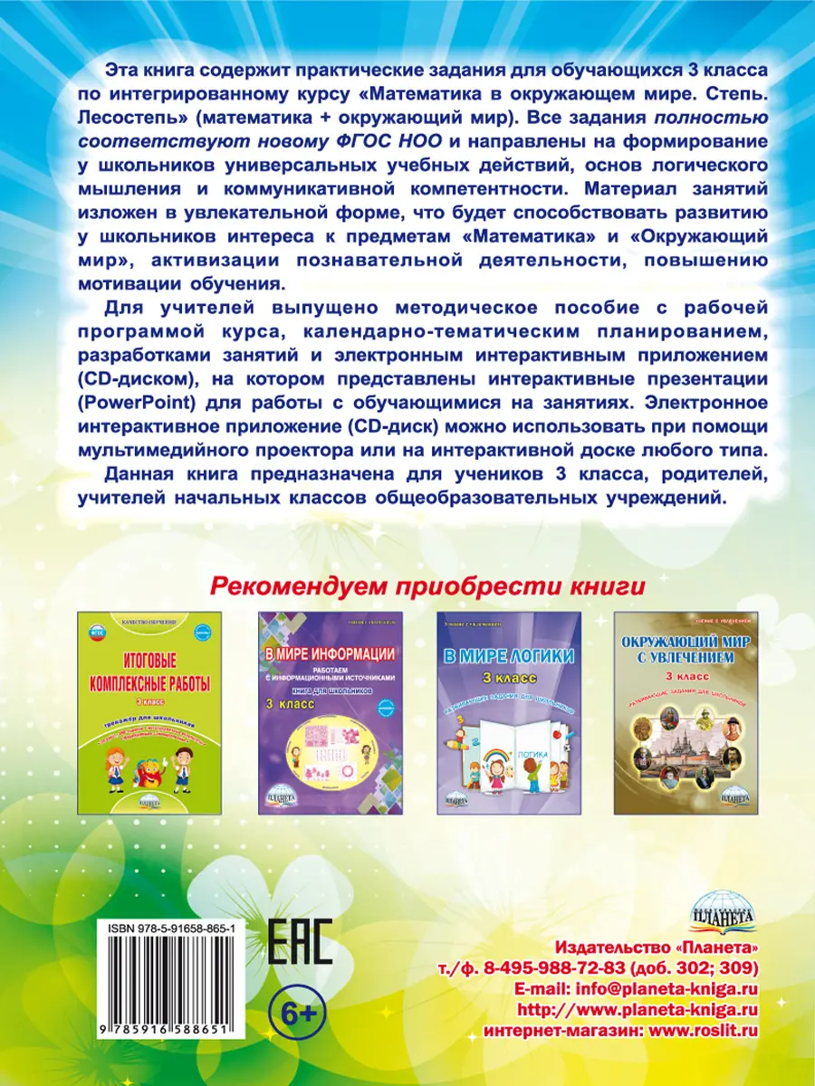 Эта книга содержит практические задания для обучающихся 3 класса по интегрированному курсу «Математика в окружающем мире. Степь. Лесостепь» (математика + окружающий мир).