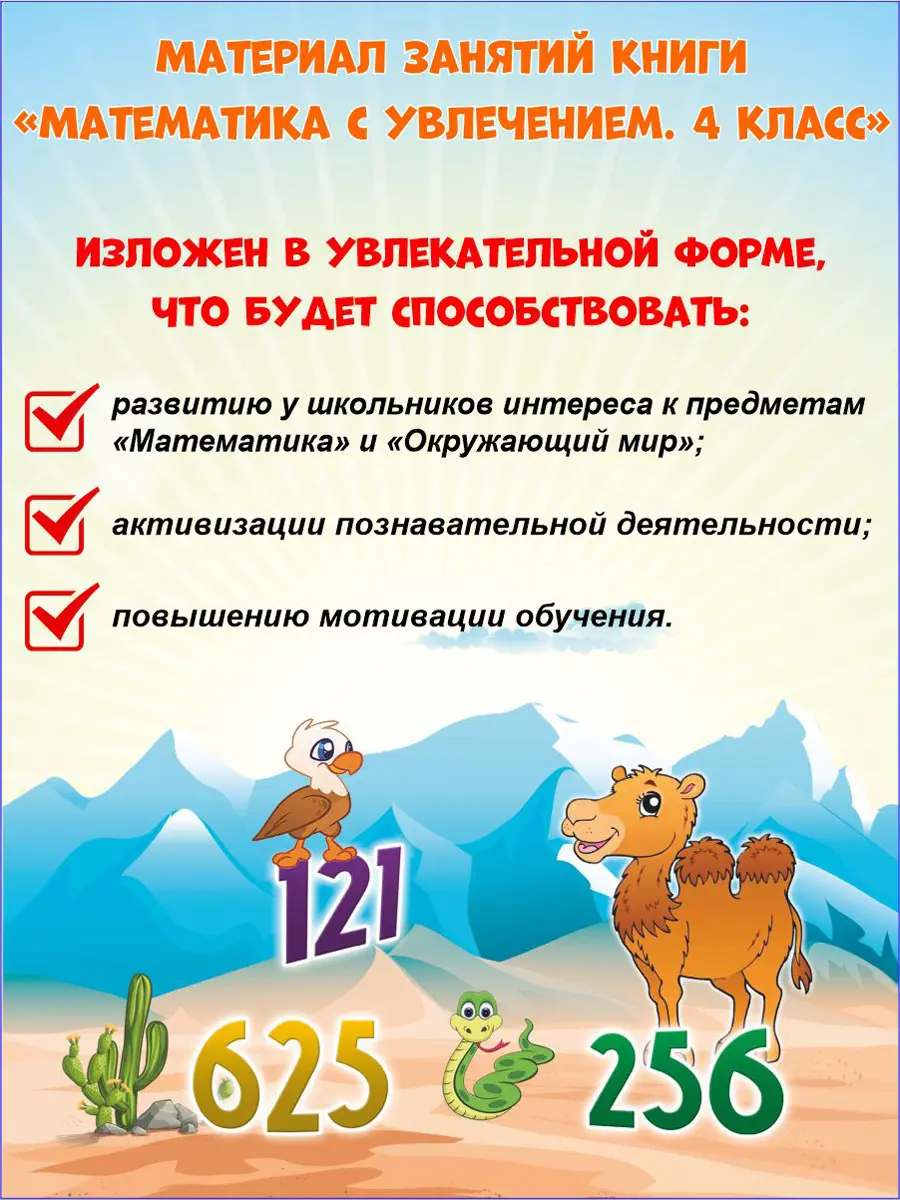 Все задания составлены с учетом стандарта второго поколения и направлены на формирование у школьников универсальных учебных действий, основ логического мышления и коммуникативной компетентности. Материал занятий изложен в увлекательной форме, что будет способствовать развитию у школьников интереса к предметам «Математика» и «Окружающий мир», активизации познавательной деятельности, повышению мотивации обучения.
