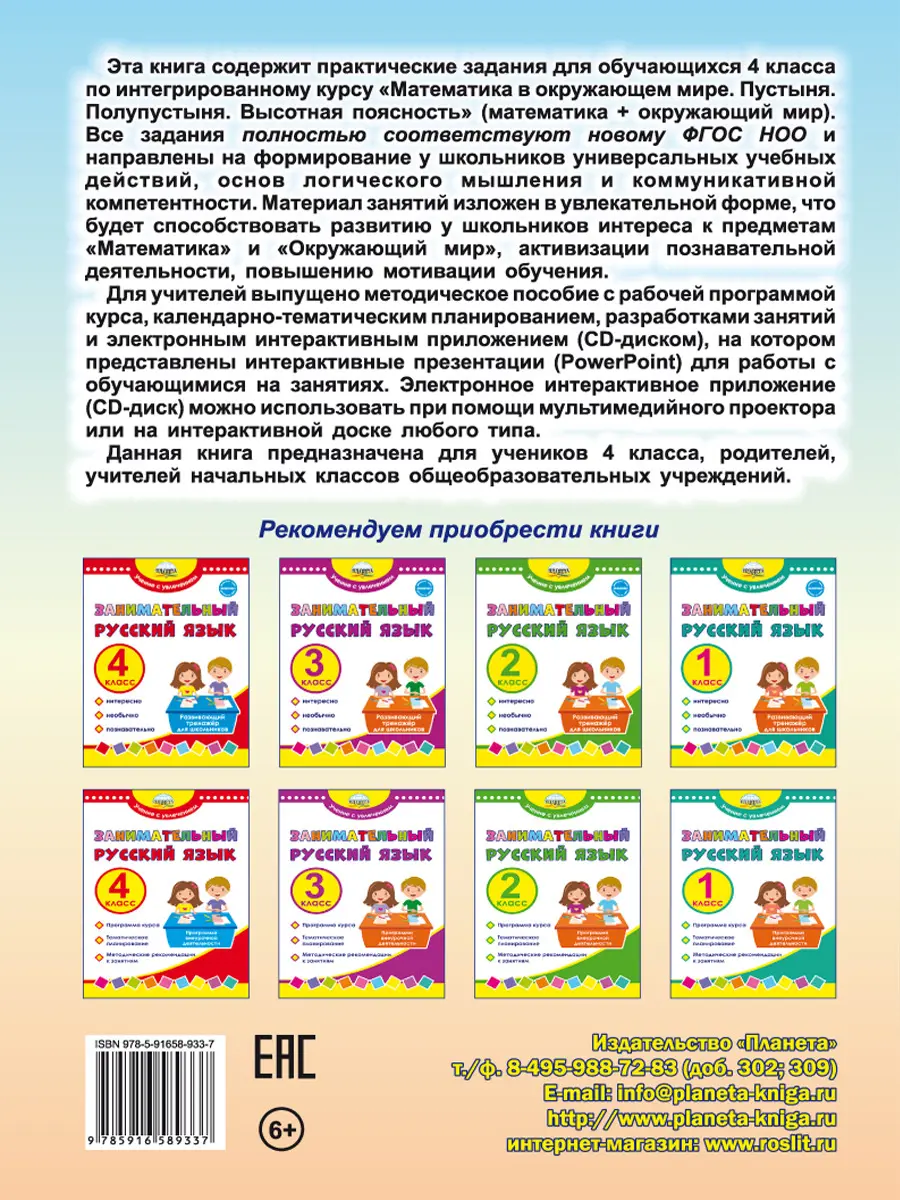 Эта книга содержит практические задания для обучающихся 4 класса по интегрированному курсу «Математика в окружающем мире. Пустыня. Полупустыня. Высотная поясность» (математика + окружающий мир).