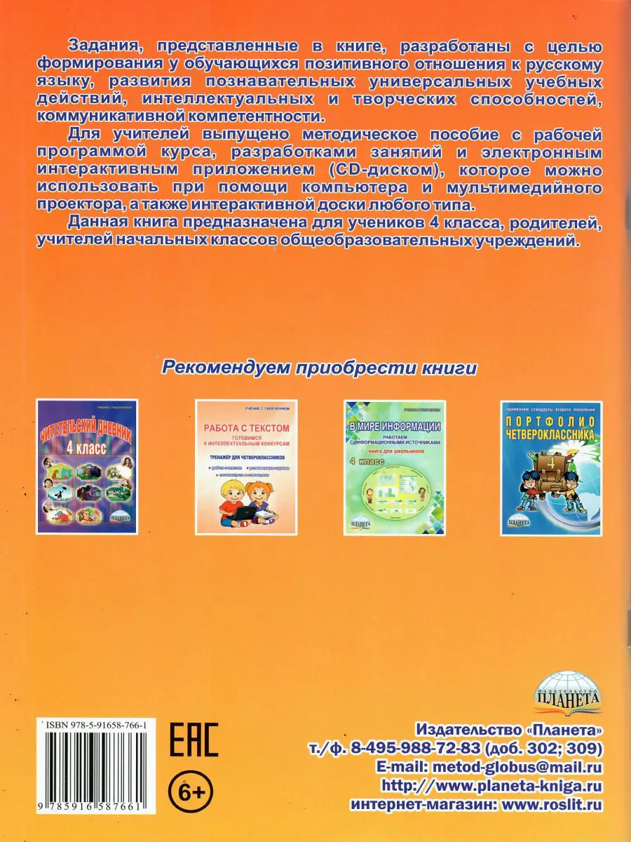 Данная книга предназначена для учеников 4 класса, родителей, учителей начальных классов общеобразовательных учреждений.