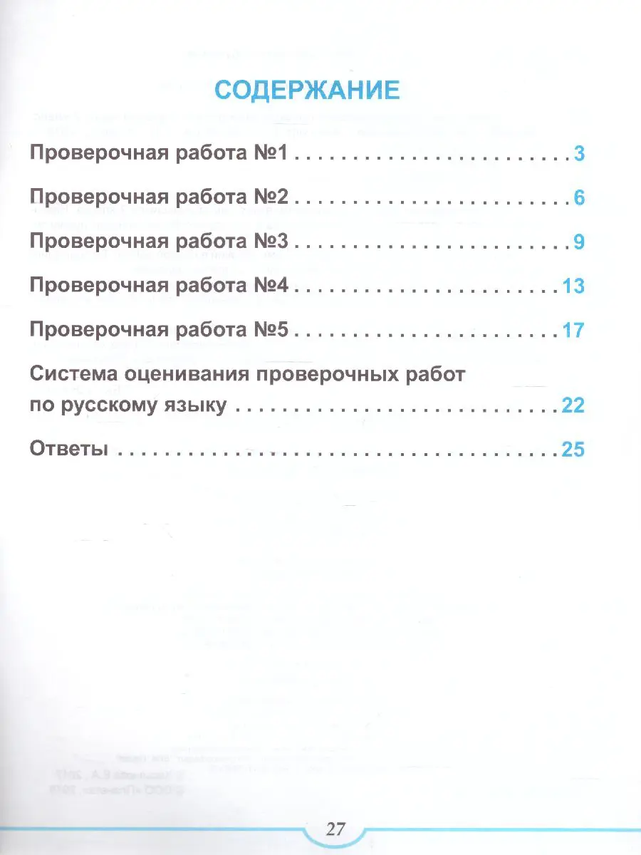 В пособии пять проверочных работ, по семь заданий в каждой работе. В конце книги приведены указания по системе оценивания работ и ответы к заданиям. Книга может использоваться для проведения тренировочных проверочных работ по русскому языку, а также как индивидуальный (домашний) тренажёр для второклассников.