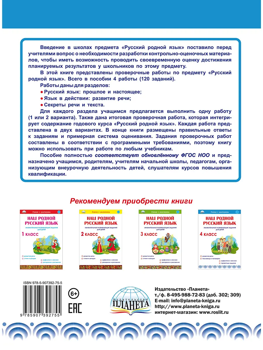 В книге представлены проверочные работы по предмету "Русский родной язык".