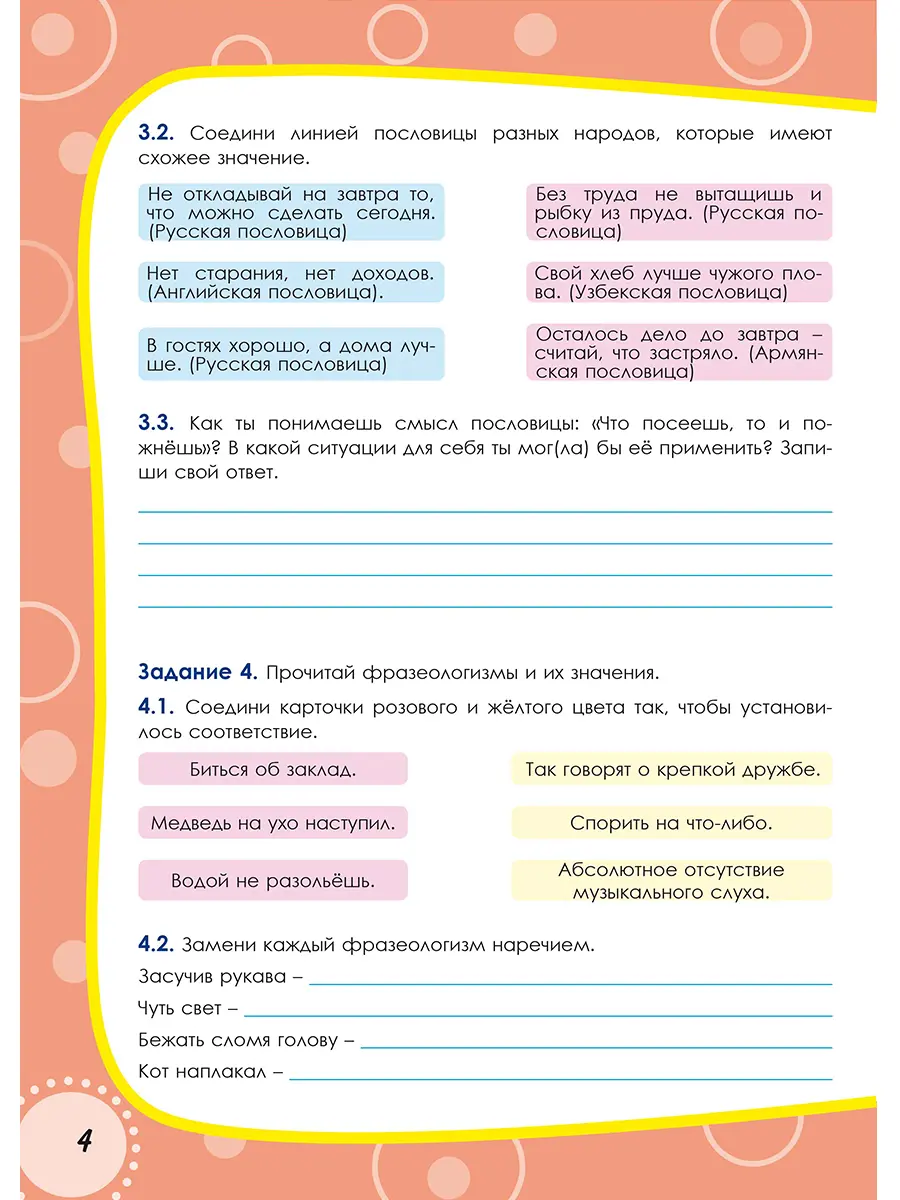 Всего в пособии 4 работы (120 заданий) для разделов: - Русский язык: прошлое и настоящее: - Язык в действии: развитие речи: - Секреты речи и текста.