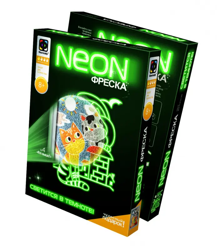 Эта фреска получила еще одно чудесное качество - теперь она светится в темноте! Светящаяся картина, которую можно сделать своими руками, обязательно понравится! вашему малышу! Простая техника изготовления интересный сюжет и необычные материалы сделаю творческий процесс веселым и увлекательным. Малыш будет усердно трудиться над своим первым шедевром, попутно овладевая полезными навыками. А ночью с его картиной начнут происходить необыкновенные вещи! Небо из дневного станет ночным, окошки в домах зажгутся, месяц будет освещать не только картину, но и комнату волшебным синим светом. Приятно делать чудеса своими руками! Уникальная технология с использованием неонового порошка. В набор входит: трехслойная основа с высеченным трафаретом, набор цветного песка, люминофор, заготовка рамки, деревянный стик, кисточка, бумажная салфетка, подробная инструкция. Для детей от 8 -лет.