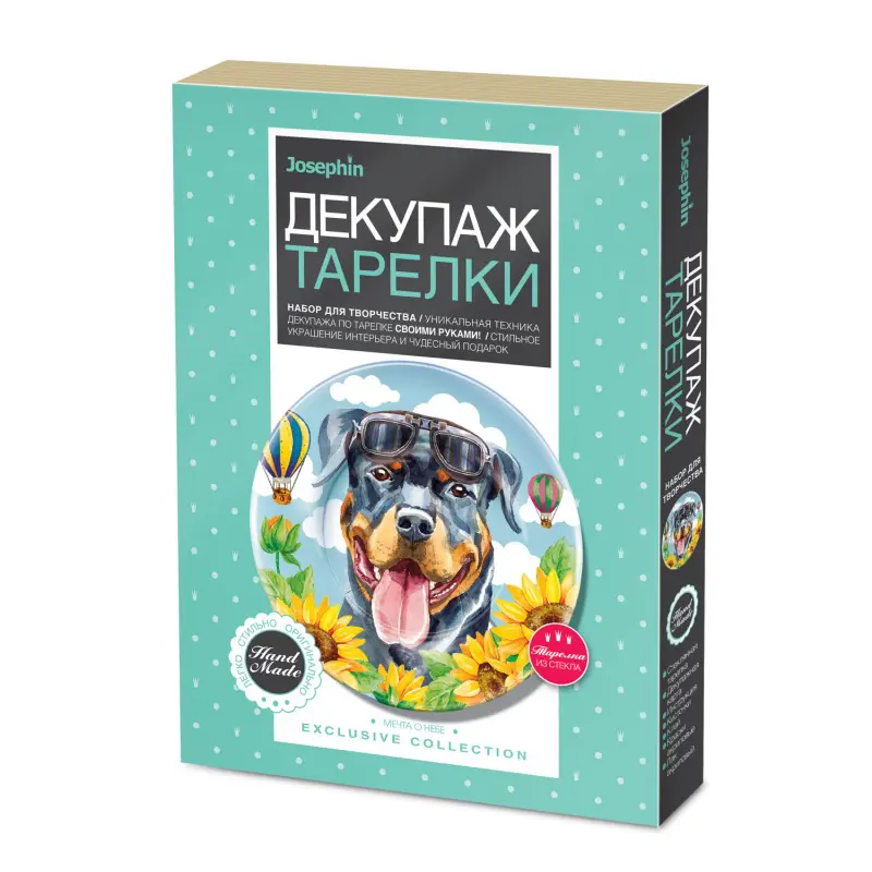 Декупаж тарелок — отличный способ проявить вашу творческую натуру и освоить для себя новую декоративную технику. Благодаря этому набору вы не только освоите технику обратного декупажа, но и изготовите прекрасное интерьерное изделие, которым можно украсить стену или установить на стационарную подставку. Получите удовольствие от процесса и смело воплощайте свои самые оригинальные творческие идеи! В набор входит: стеклянная тарелка, декупажная карта, инструкция, кисти, клей, краски, лак. Состав: стекло, бумага, дерево, клей, краска, лак. Для детей от 5 лет.