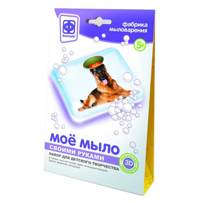 Как сделать оригинальный и полезный подарок своими руками? Легко и весело! В наборе вы найдете всё необходимое для изготовления мыла своими руками. Вам нужно лишь следовать советам простой и понятной инструкции, и добавить главный ингредиент – хорошее настроение! Подарите вашему ребёнку незабываемую радость созидания! Уникальная технология 3D! В набор входит: мыльная основа; картинка; формочка для мыла; инструкция. Характеристики: возраст: от 5 лет; размер мыла: 60 х 80 мм. Состав: мыльная основа, пластмасса, бумага. Размер упаковки: 4,5 х 12 х 19 см. Вес: 135 г.