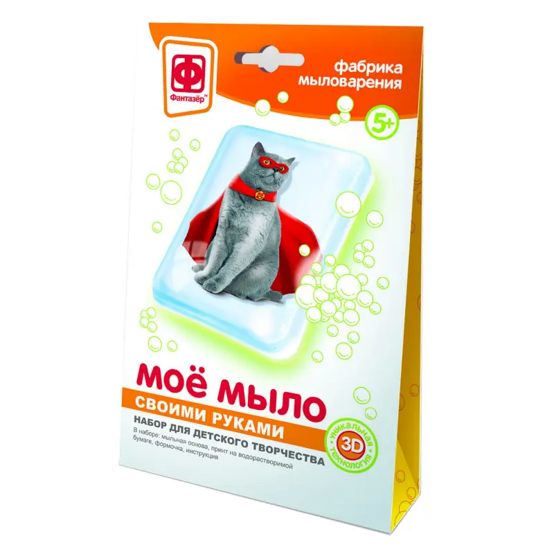 Как сделать оригинальный и полезный подарок своими руками? Легко и весело! В наборе вы найдете всё необходимое для изготовления мыла своими руками. Вам нужно лишь следовать советам простой и понятной инструкции, и добавить главный ингредиент – хорошее настроение! Подарите вашему ребёнку незабываемую радость созидания! Уникальная технология 3D! В набор входит: мыльная основа; картинка; формочка для мыла; инструкция. Характеристики: возраст: от 5 лет; размер мыла: 60 х 80 мм. Состав: мыльная основа, пластмасса, бумага. Размер упаковки: 4,5 х 12 х 19 см. Вес: 135 г.
