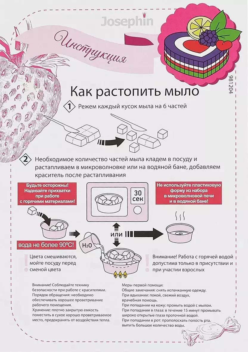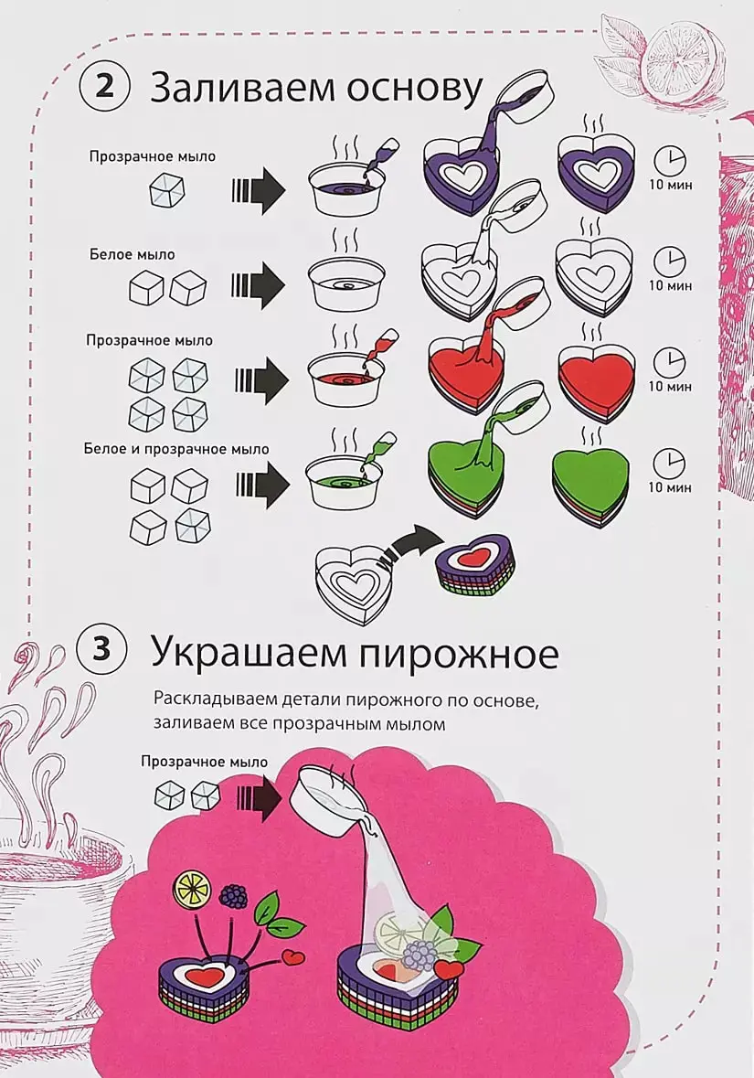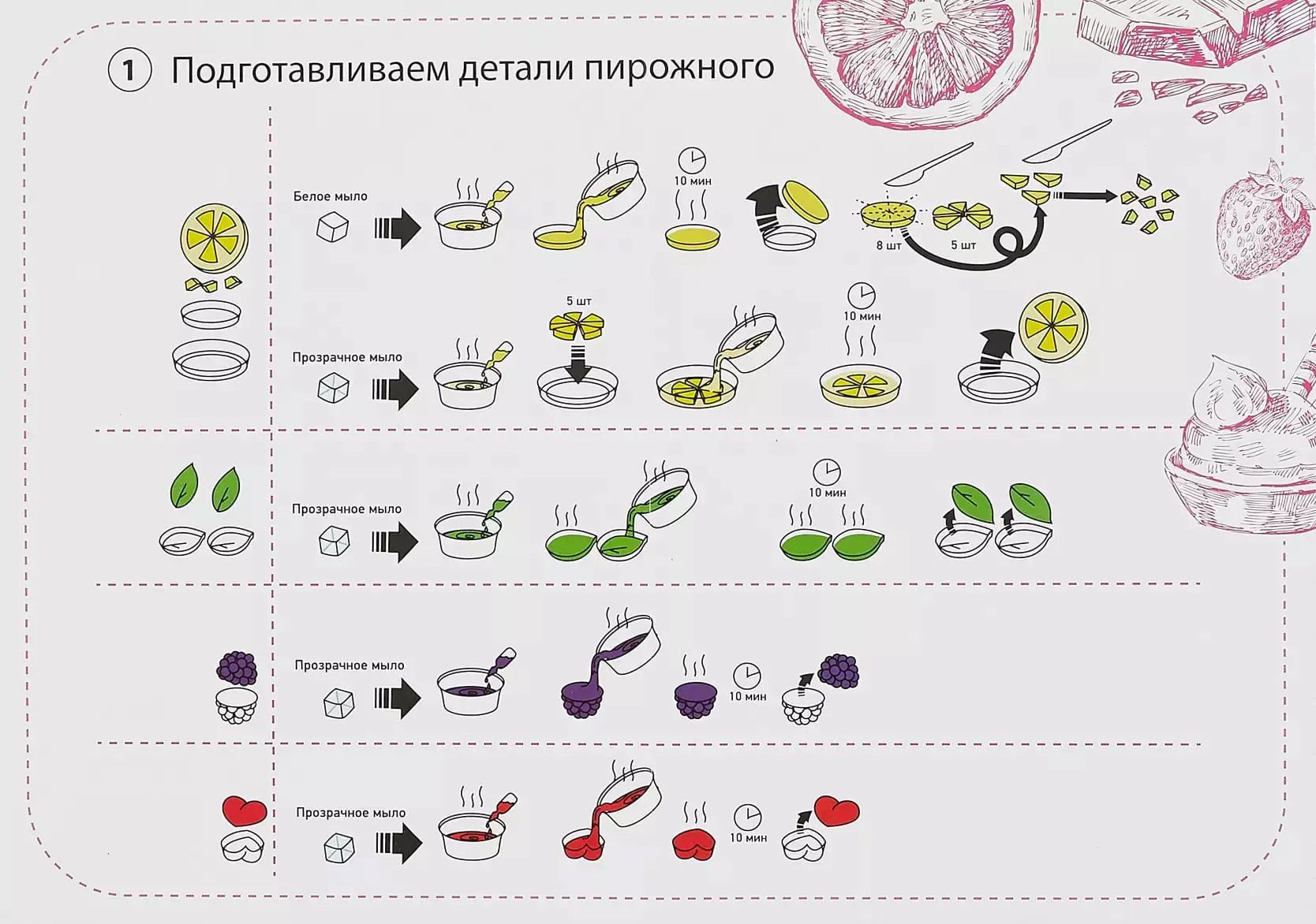 Набор для творчества. Создание оригинального мыла с помощью мыльной основы, ярких красителей и сочного ароматизатора. Если ты романтичная и творческая натура, то этот набор для тебя!Это не пирожное, это - Мыло-пирожное! Его так и хочется съесть, что мы делать не советуем, а еще больше - сделать своими руками. Оно получится восхитительно правдоподобным, ароматным и "вкусным". Масса удовольствия и никаких диет после! Подойдёт сластенам всех возрастов! В наборе есть всё необходимое для изготовления мыла, а также подробная инструкция с иллюстрациями. Желаем Вам получить удовольствие как от самого процесса изготовления, так и от результата.