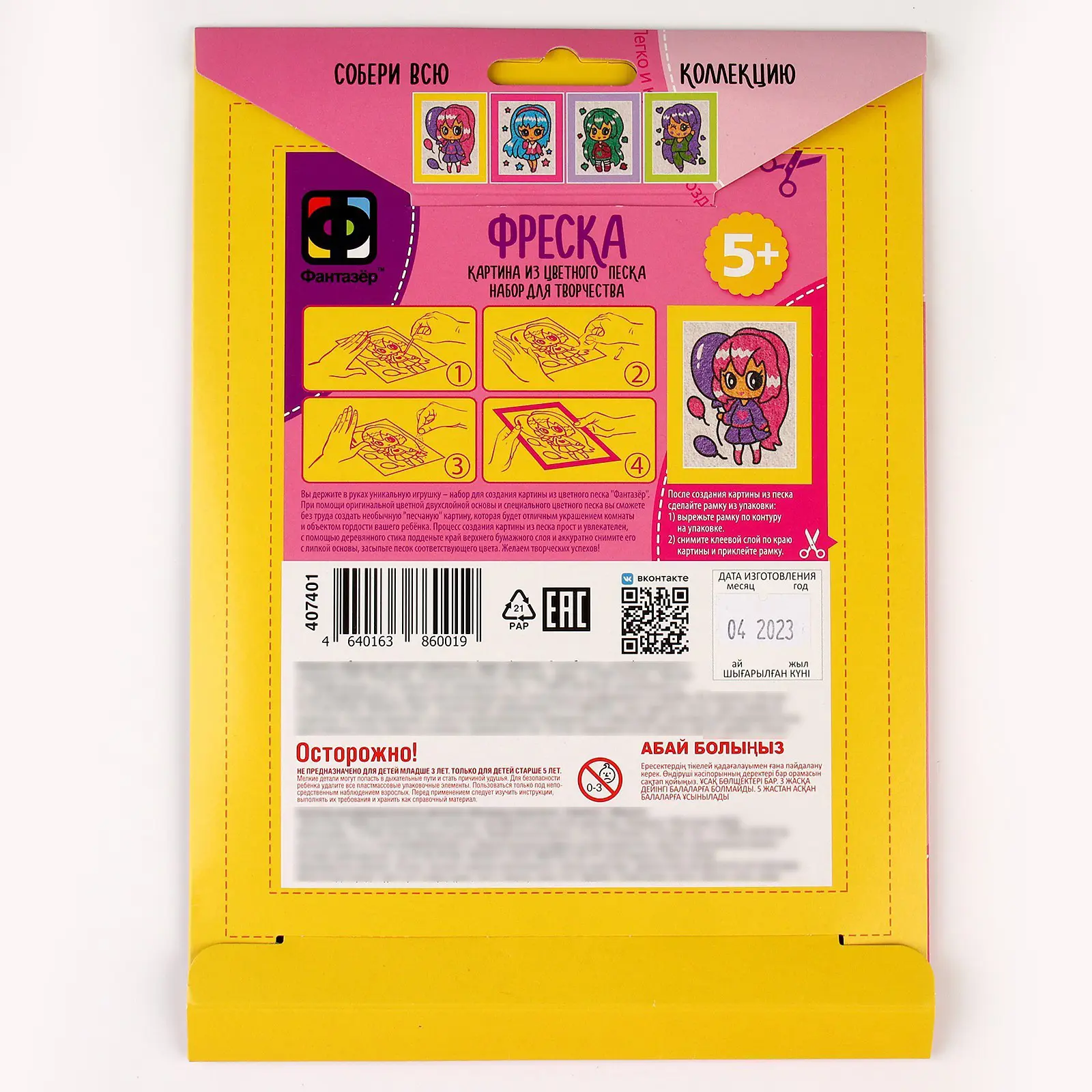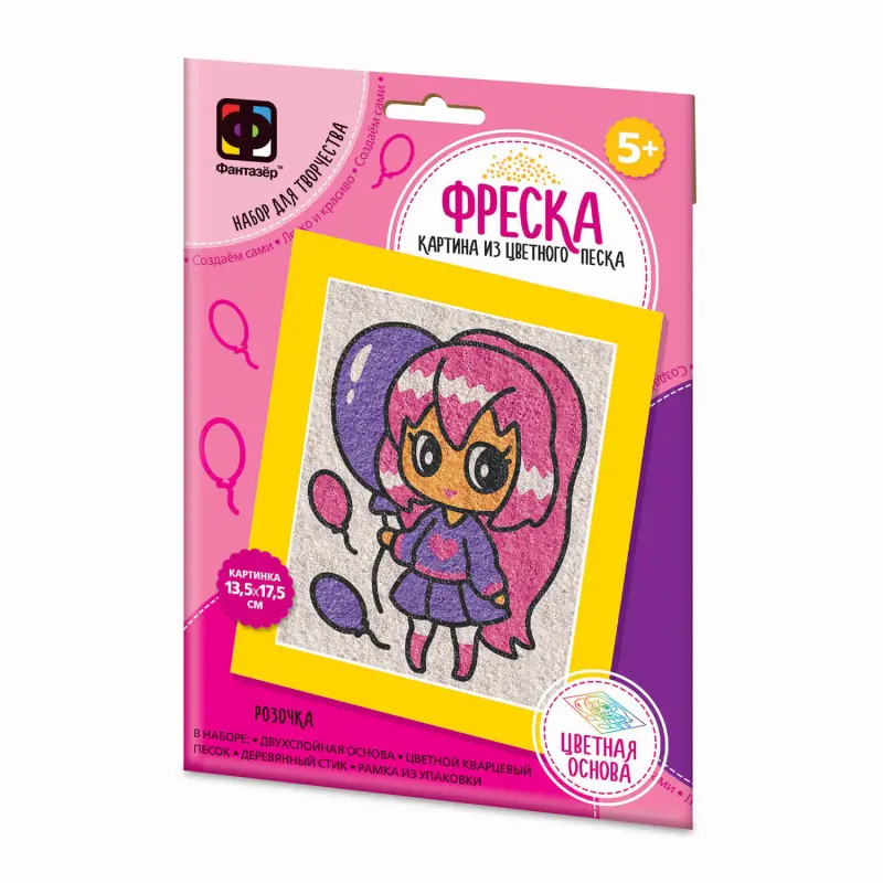 Дети обожают играть с песком, и маленькие, и взрослые! Этот процесс развивает мелкую моторику, наблюдательность, тактильные ощущения. Мы дополнили это увлекательное занятие творческой составляющей и предлагаем создать из песка настоящую картину.Создание Фрески - процесс не сложный, но потребует от ребенка внимания, терпения и усидчивости. А яркий и необычный песочный результат непременно порадует и привлечет внимание друзей и знакомых.В нашем наборе двухслойная основа с липким слоем и цветным рисунком, деревянный стик для аккуратной работы с тонкими элементами, комплект разноцветного песка и рекомендации, как сделать рамку из упаковки.Выбирайте сюжет и картинку, и приступайте к увлекательному занятию!
