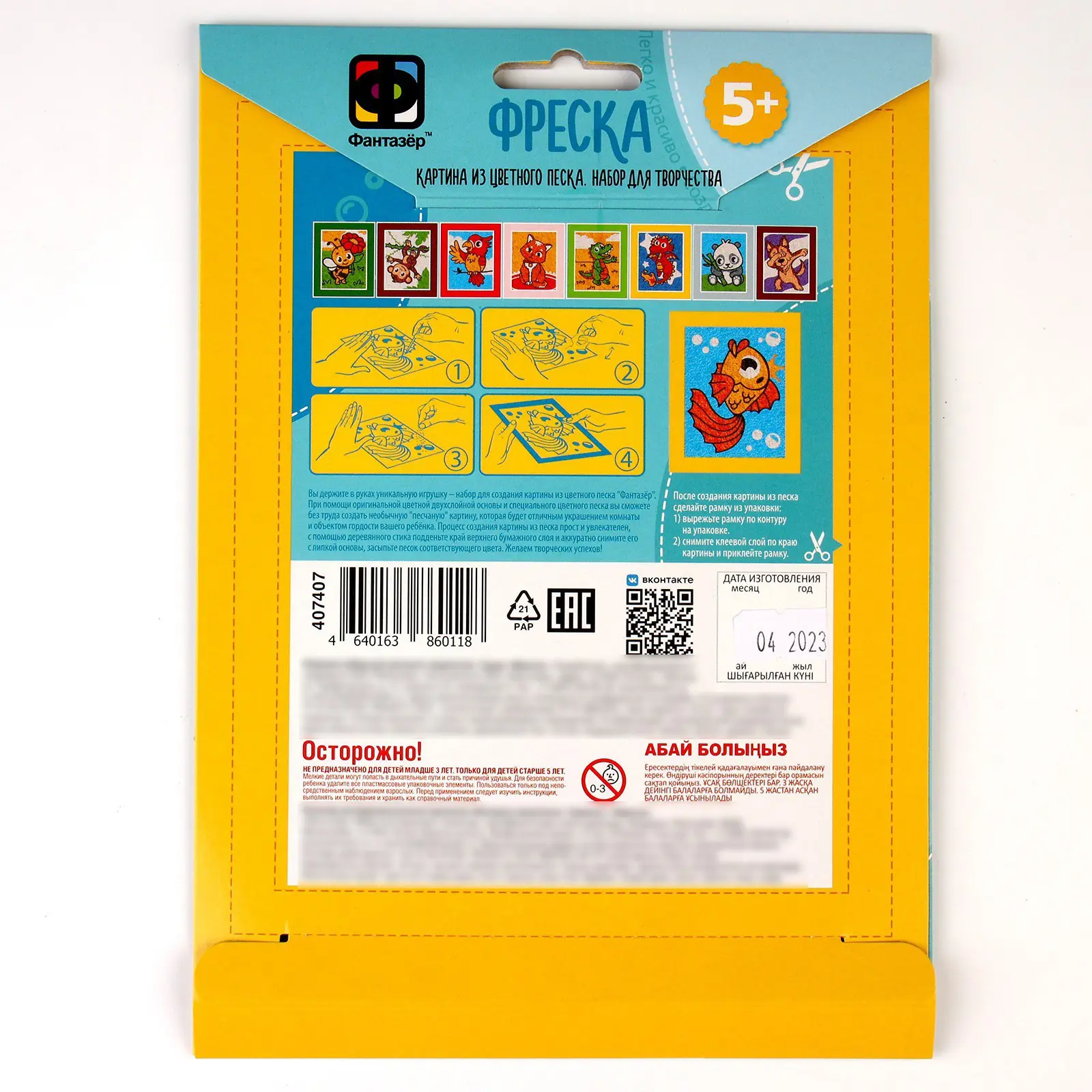 Дети обожают играть с песком, и маленькие, и взрослые! Этот процесс развивает мелкую моторику, наблюдательность, тактильные ощущения. Мы дополнили это увлекательное занятие творческой составляющей и предлагаем создать из песка настоящую картину.Создание Фрески - процесс не сложный, но потребует от ребенка внимания, терпения и усидчивости. А яркий и необычный песочный результат непременно порадует и привлечет внимание друзей и знакомых.В нашем наборе двухслойная основа с липким слоем и цветным рисунком, деревянный стик для аккуратной работы с тонкими элементами, комплект разноцветного песка и рекомендации, как сделать рамку из упаковки.Выбирайте сюжет и картинку, и приступайте к увлекательному занятию!