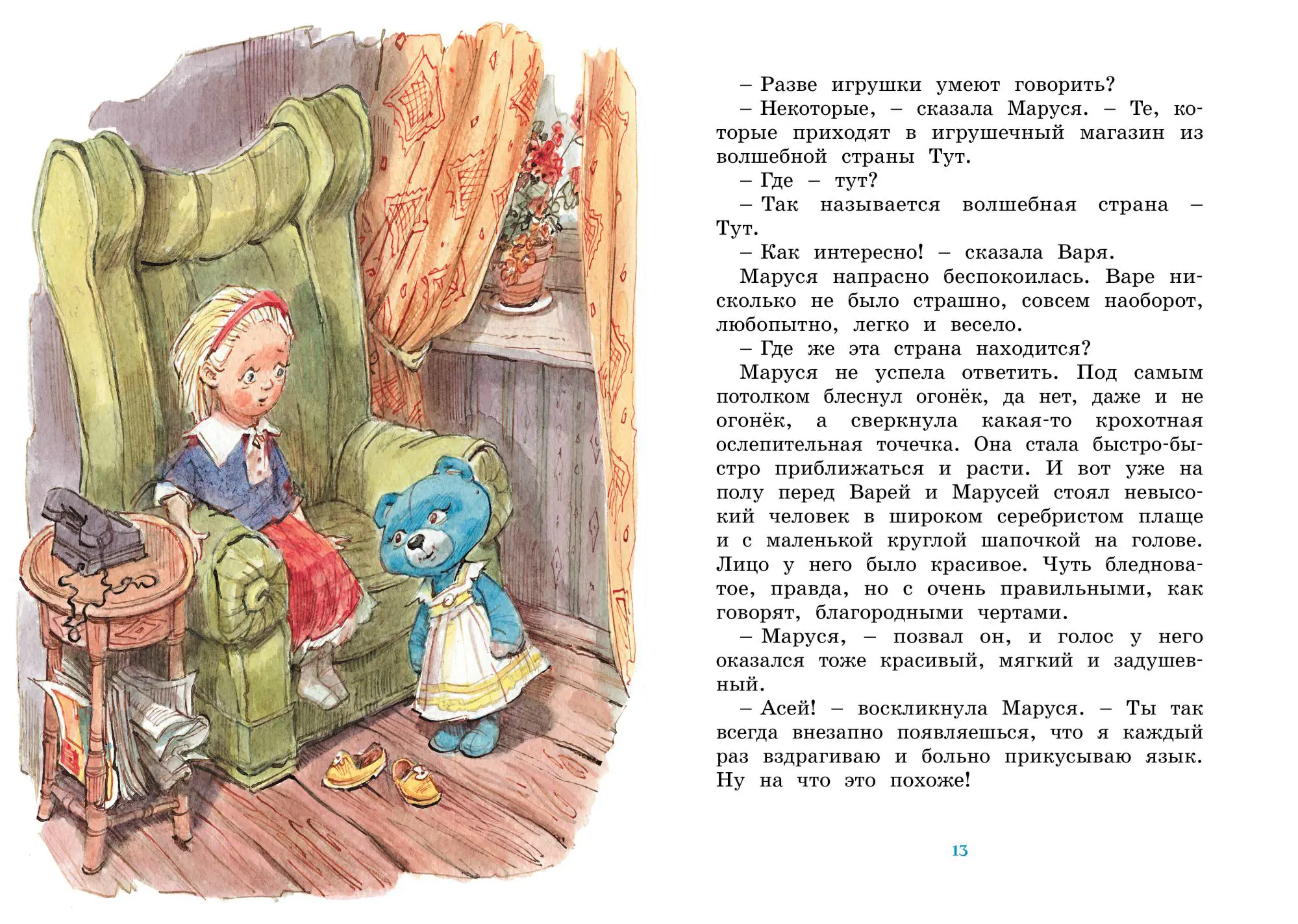 В сказочной повести Ирины Токмаковой «Маруся ещё вернётся» есть место и фантазии, и чуду. Старый зелёный дом оказывается живым, а плюшевая медведица Маруся — волшебной... Отправляясь в опасное путешествие, чтобы спасти сказочную страну Тут, героиня повести девочка Варя просто обязана стать смелой, решительной, самостоятельной — иначе ничего не получится. И — о чудо! Победив лживого Барнабаса Злина, Варя побеждает и собственные страхи...