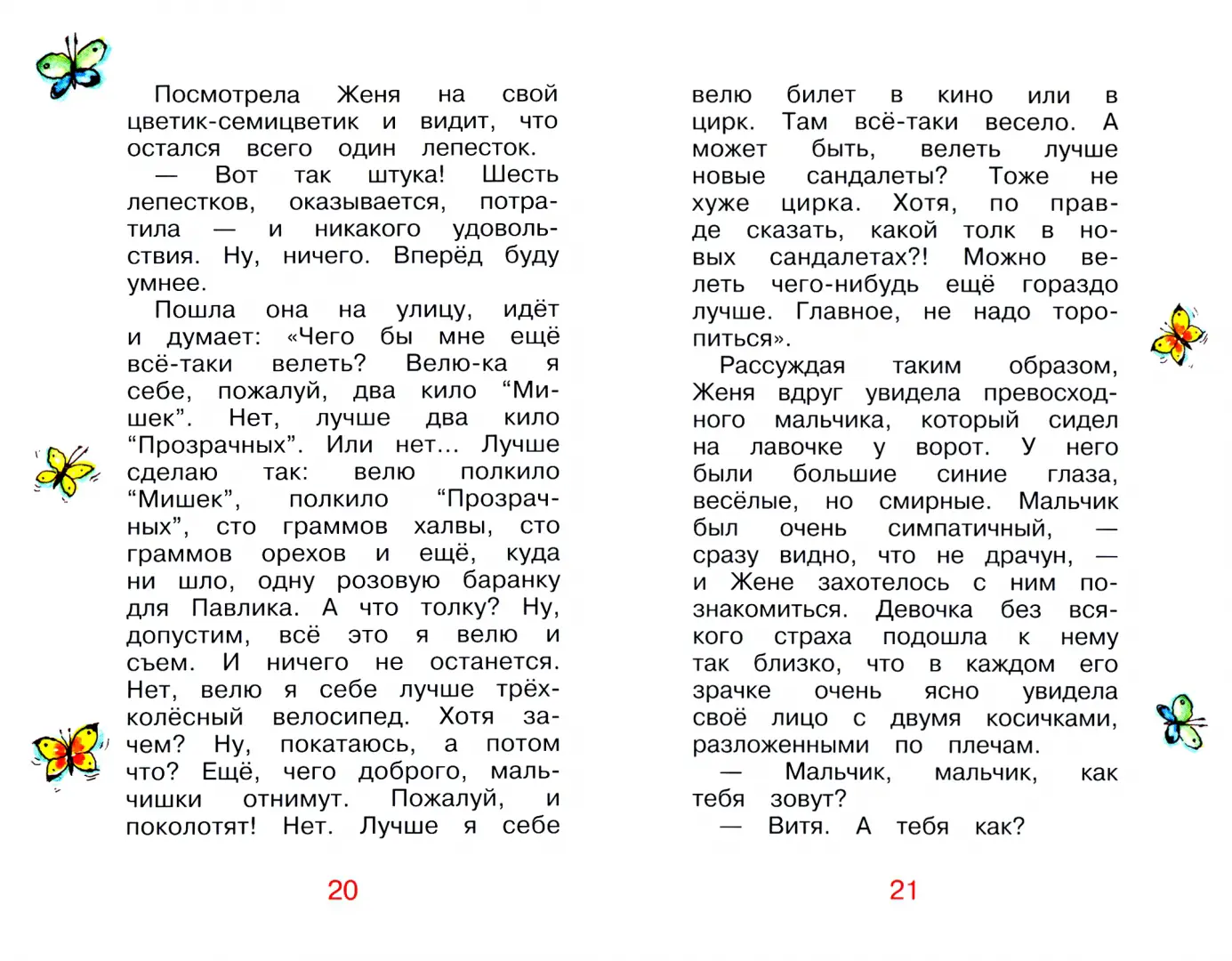 Каждый из лепестков исполняет желания! Женя то переносится на Северный полюс, то желает, чтобы все куклы, мячи и велосипеды мира стали ее собственностью.