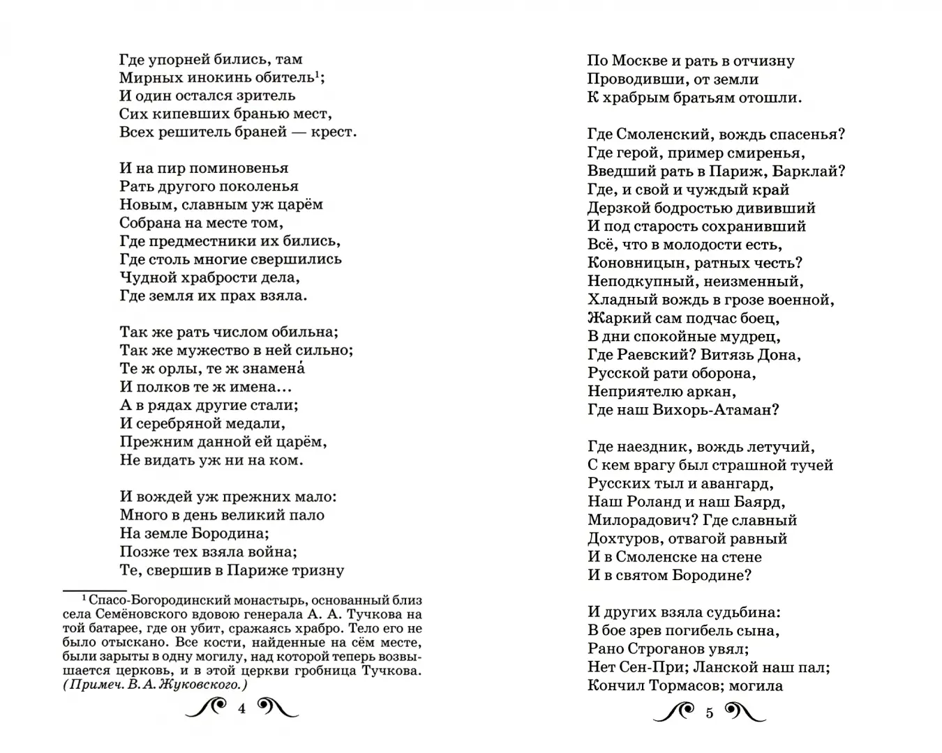 В сборник вошли стихотворения русских поэтов, посвящённые событиям и участникам Отечественной войны 1812 года и Бородинской битвы, — М. Лермонтова, К. Батюшкова, П. Вяземского, Д. Давыдова, М. Дмитриева, Ф. Глинки, В. Жуковского, М. Милонова, А. Майкова, А. Пушкина, К. Павловой, И. Никитина, М. Хитрово, В. Раевского, К. Рылеева, М. Цветаевой.