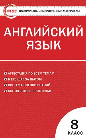 Контрольно-измерительные материалы (КИМы) разработаны для учеников 8 класса, изучающих английский язык по учебнику М.З. Биболетовой и Н.Н. Трубаневой «Enjoy English». В пособие вошли лексико-грамматические тесты, а также тесты по чтению и аудированию. В конце издания ко всем заданиям приведены ответы.