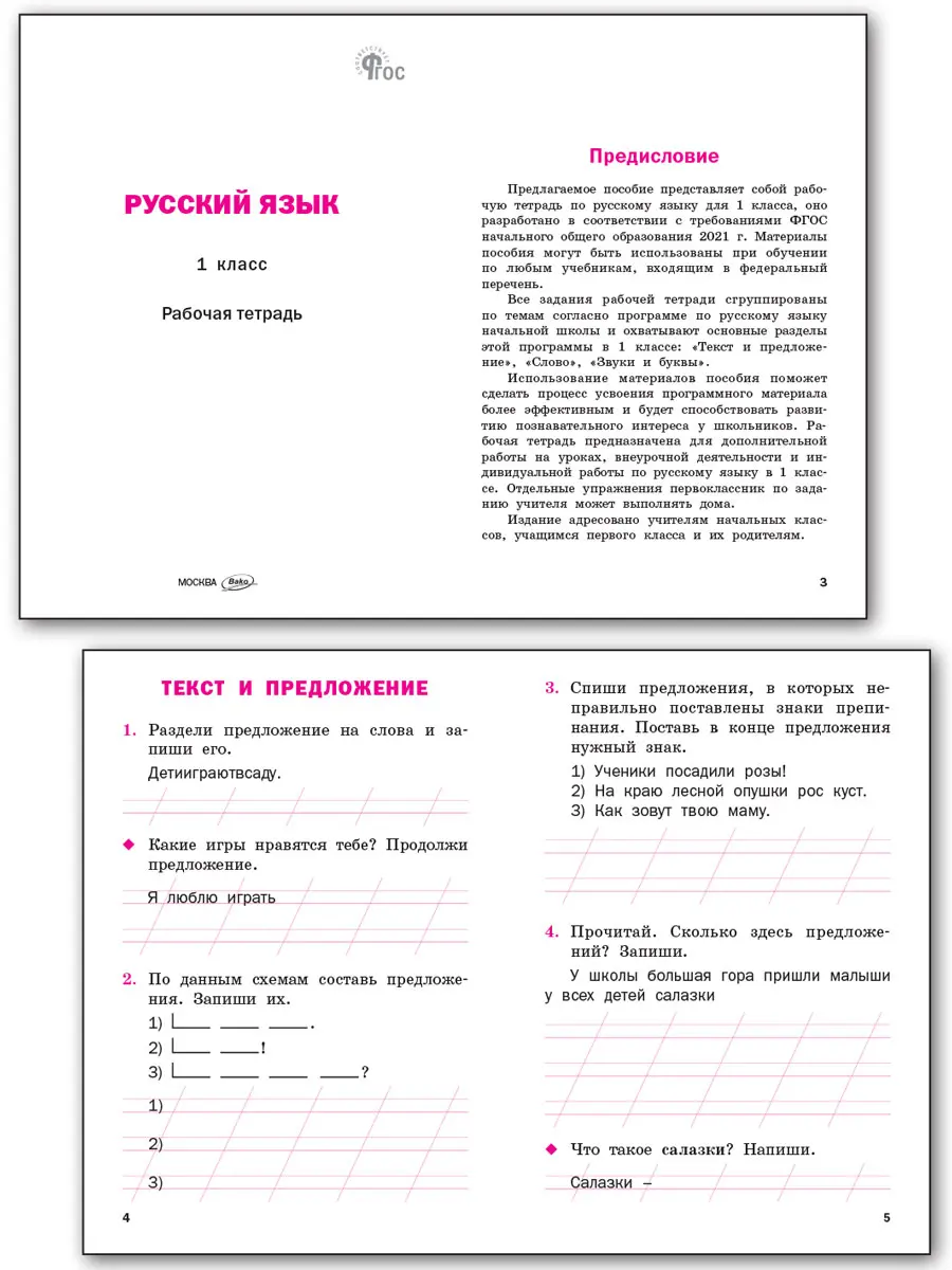 Предлагаемое пособие представляет собой рабочую тетрадь по русскому языку для 1 класса. Оно составлено в соответствии с требованиями ФГОС начального общего образования и содержит задания, сгруппированные по основным разделам программы по русскому языку начальной школы.
