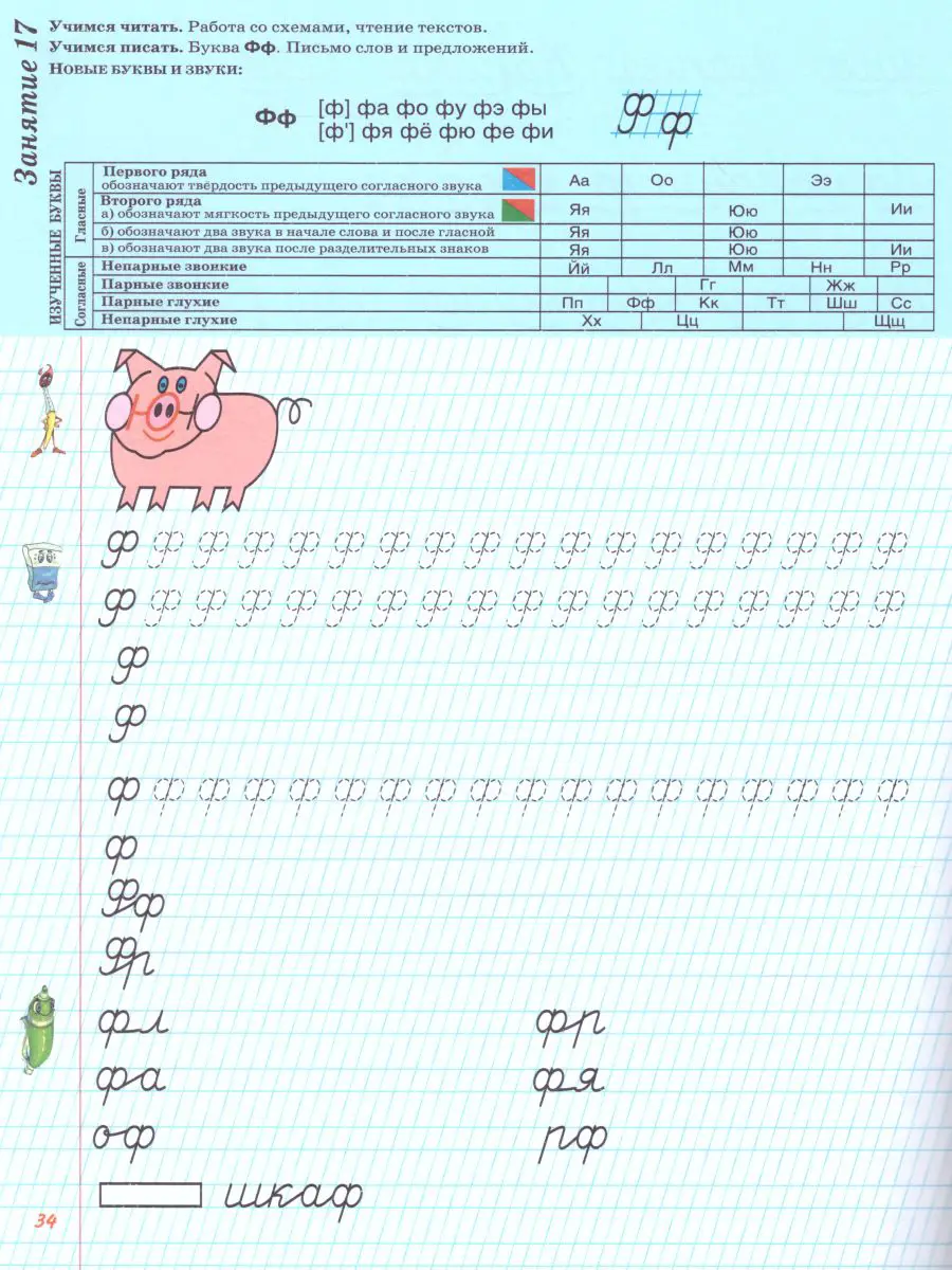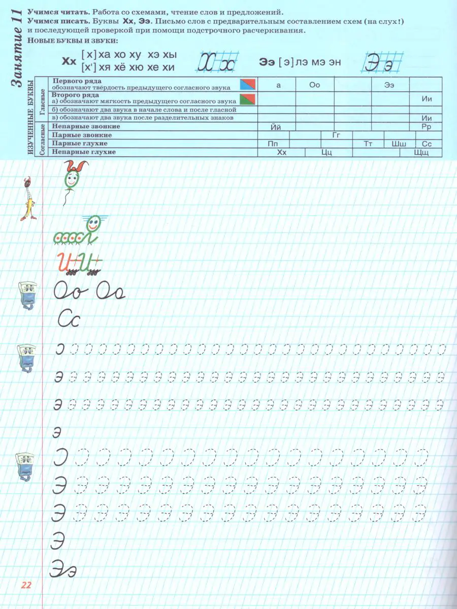 Главная задача любой прописи - научить ребенка правильно писать буквы. Эта пропись поможет вашему ребенку справиться еще и с другими сложными для него задачами. Обратите внимание на то, что первая часть каждого занятия, расположенная на голубом фоне, обращена ко взрослому.