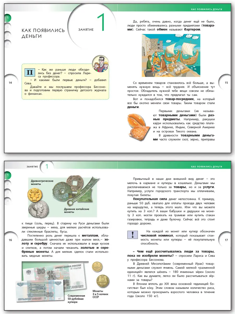 В доступной форме в учебнике изложены базовые понятия из мира финансов. Дети узнают, как появились деньги и какими они бывают, что такое семейный бюджет и почему важно его правильно планировать.
