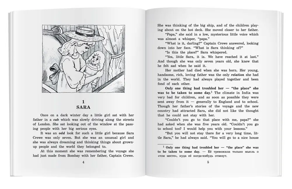 Книга представляет собой адаптацию романтической повести знаменитой детской писательницы Фрэнсис Бернетт "Маленькая принцесса" о приключениях девочки по имени Сара Кру, которая сумела справиться с непростыми испытаниями, которые уготовила ей судьба, благодаря своему мужеству, помощи верных друзей и невероятной удаче.