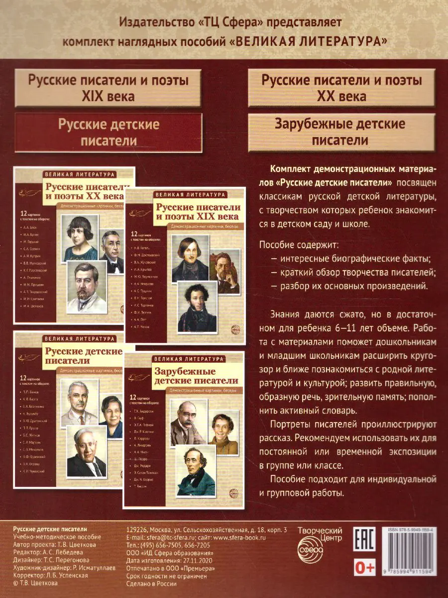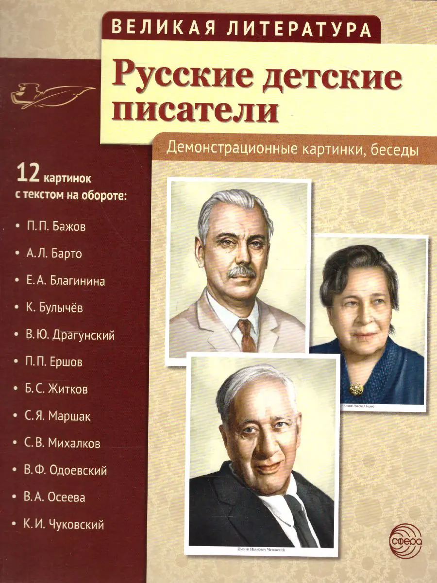 Великая литература. Русские детские писатели. 12 демонстр.картинок с текстом