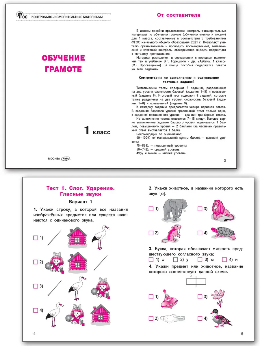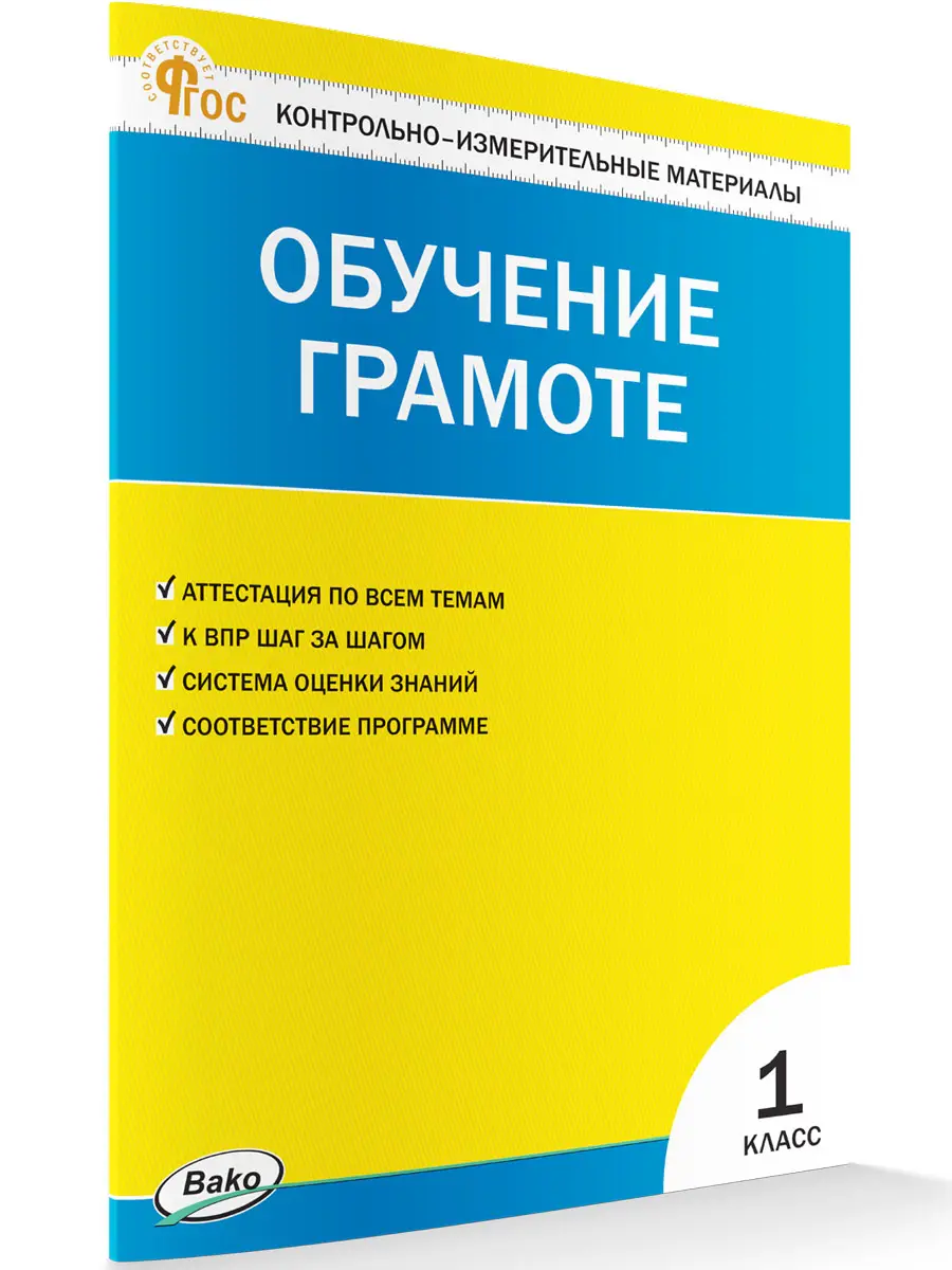 В пособии представлены контрольно-измерительные материалы по обучению грамоте для 1 класса, составленные в соответствии с требованиями действующего ФГОС начального общего образования. В конце пособия ко всем заданиям приведены ответы.Издание адресовано учителям начальных классов, а также школьникам и их родителям.