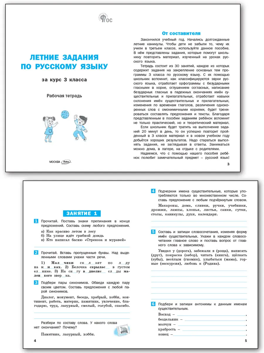 Пособие содержит необходимые для закрепления знаний по русскому языку у учащихся 3 класса задания, которые школьники могут выполнить самостоятельно во время летних каникул. Все задания соответствуют ФОП НОО по учебному предмету «Русский язык» и требованиям действующего ФГОС начального общего образования. Издание адресовано учащимся 3 класса и их родителям.